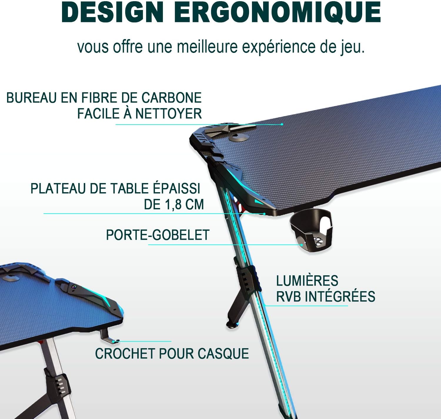 Vient avec Table de bureau de jeu / porte-gobelet / boite de gestion de fil / support pour casque / sac d'accessoires. Montage facile