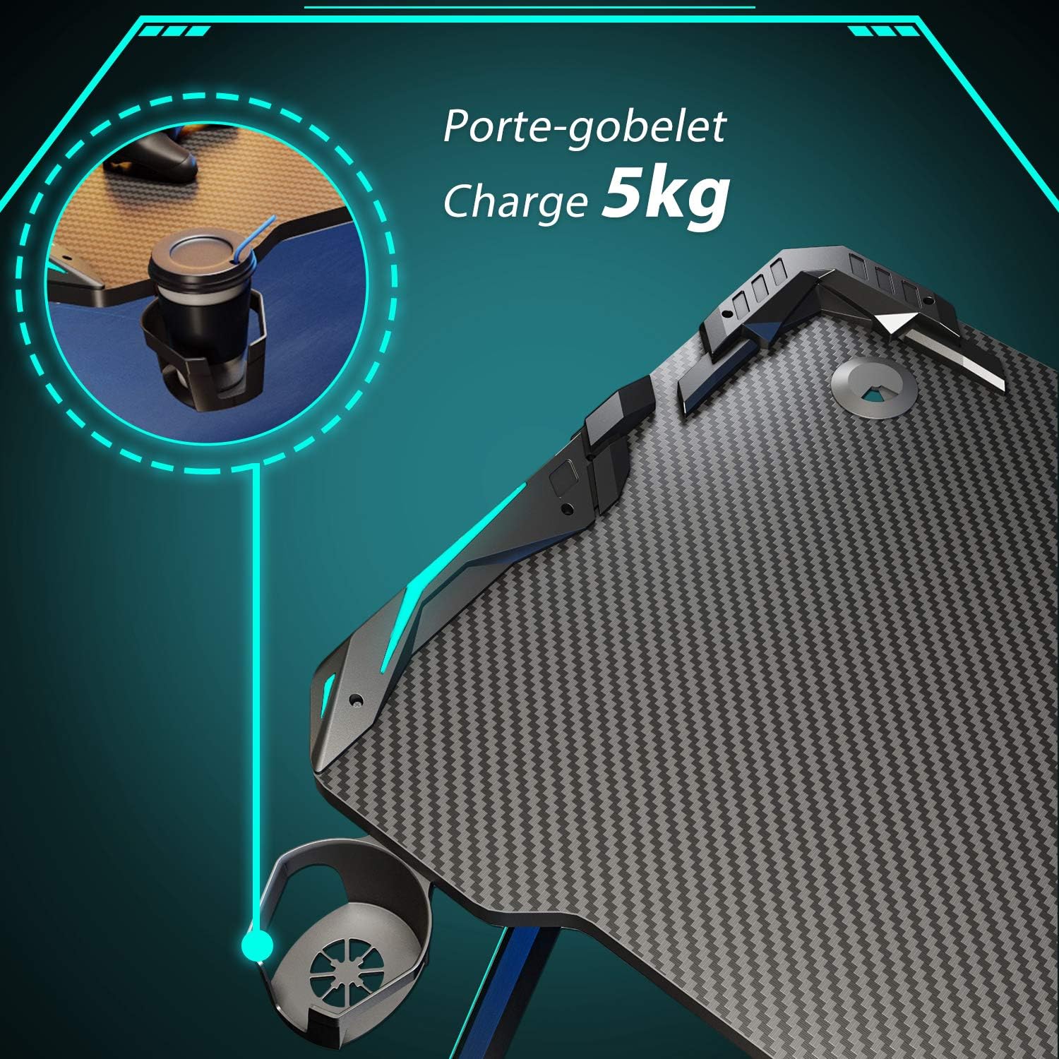 Apparence cool - Lumières surround RVB, 7 couleurs et 8 modules(Appuyez pendant 2 secondes pour s'allumer et éteindre) - Rainure de stockage sur le bureau et la conception humaine peut contenir l'écouteur et le gobelet d'eau. Système de gestion des câbles