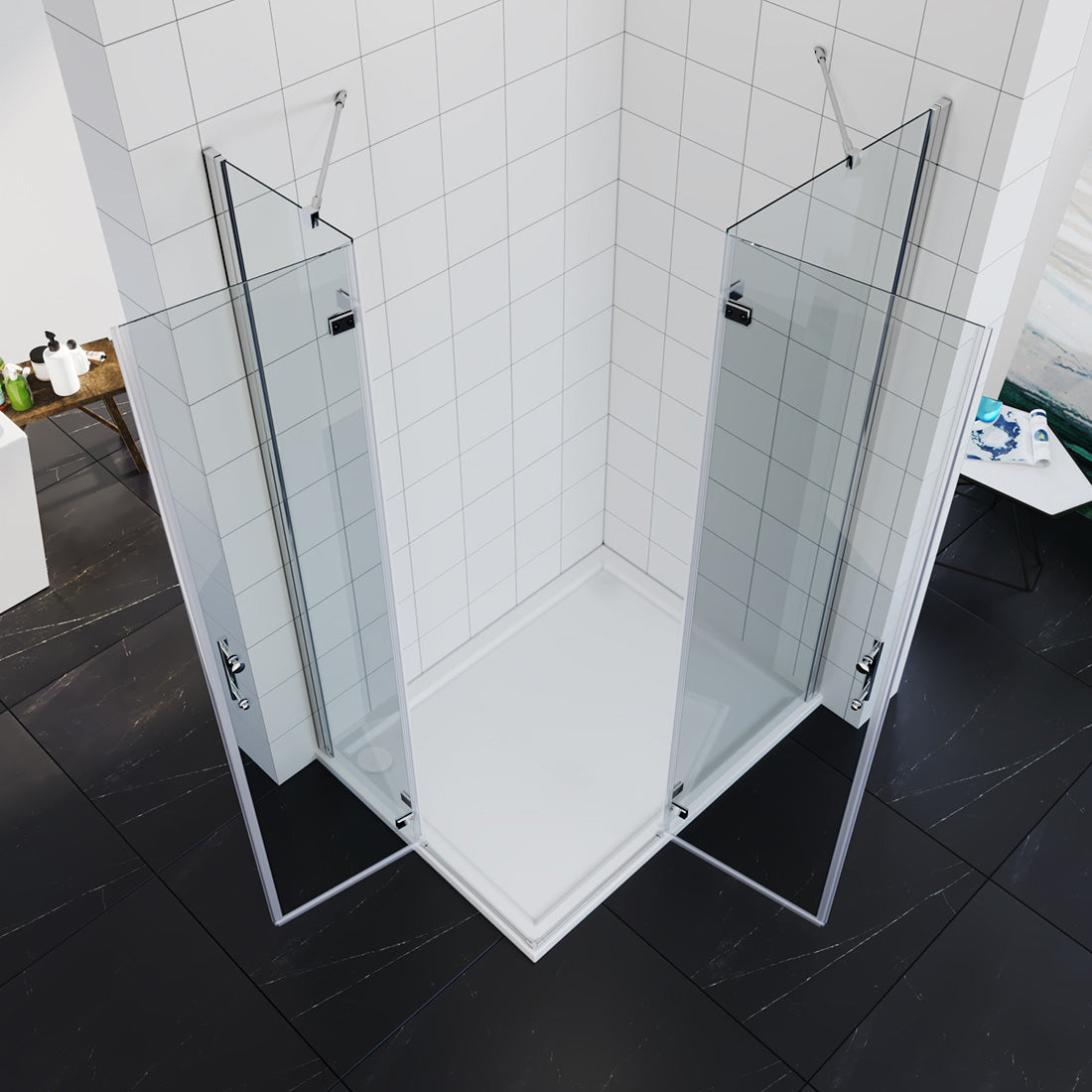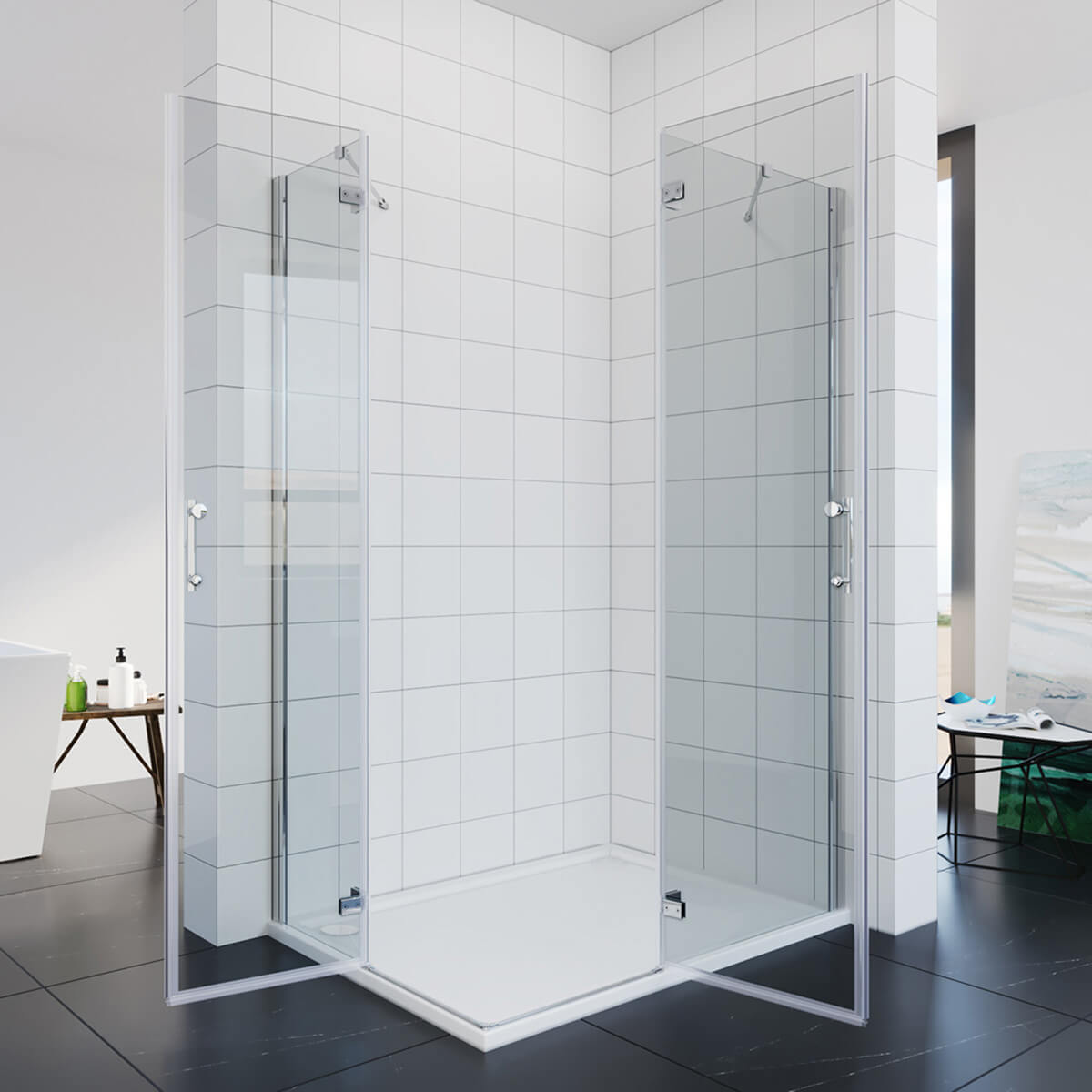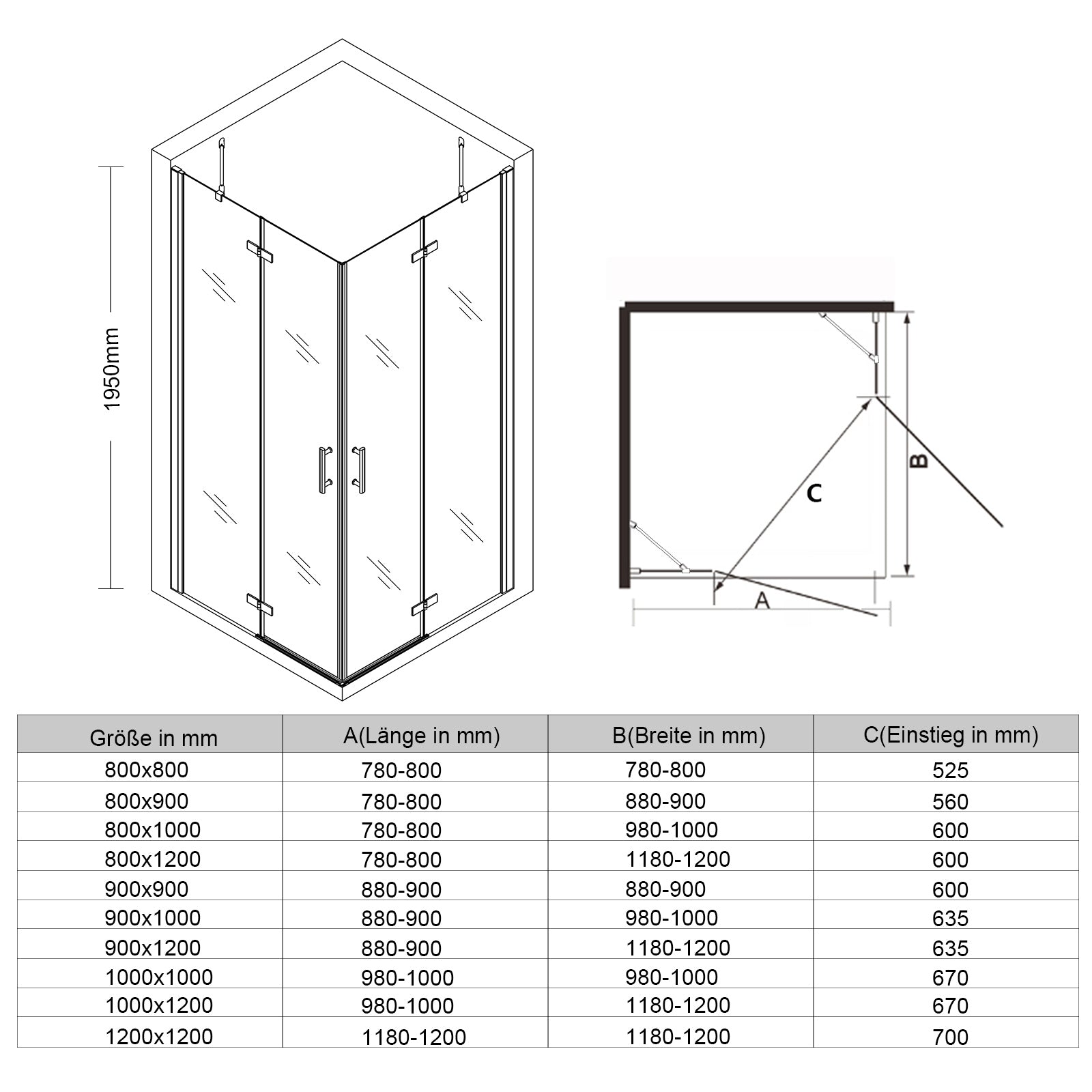 Cabine de douche d'angle Douche Porte à charnières porte pliante 80-120cm hauteur 195cm