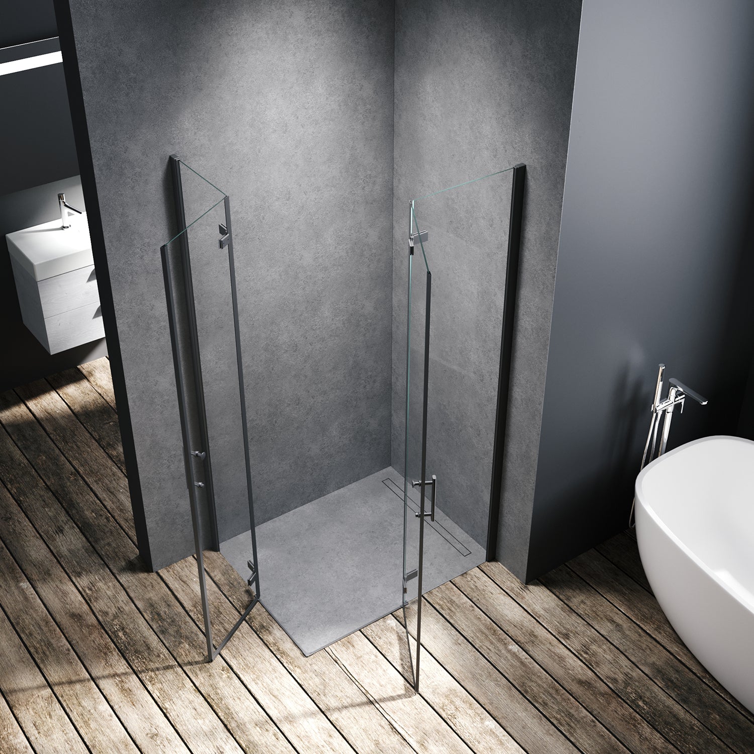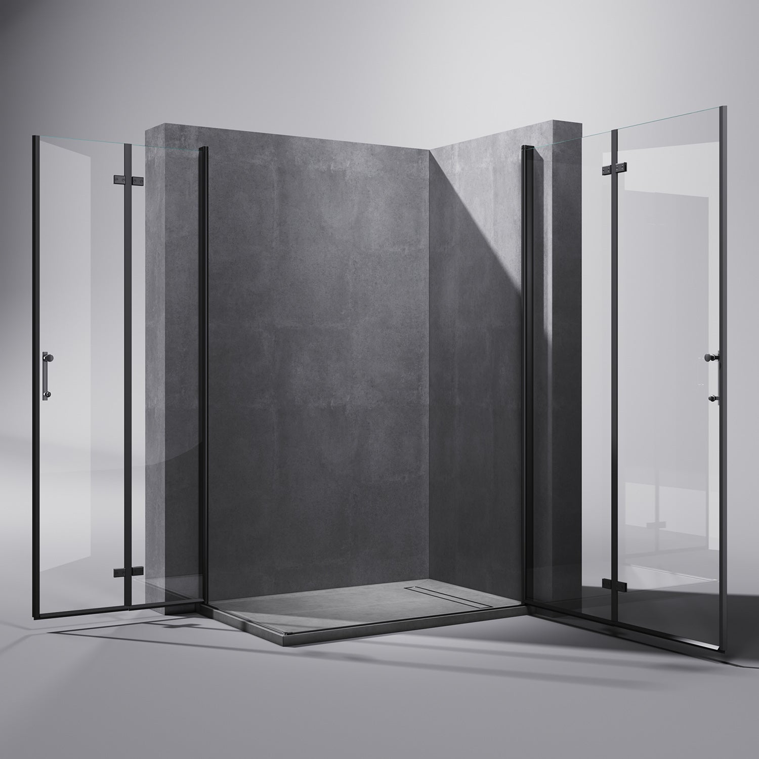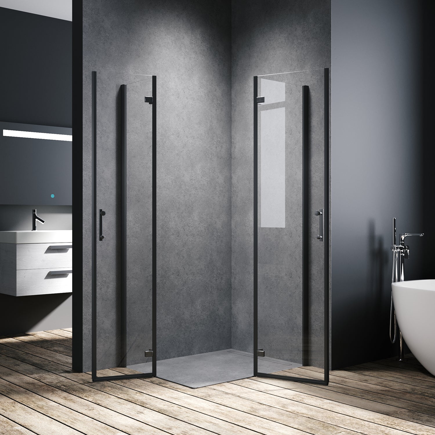 Cabine de douche accès d'angle Porte de douche pivotante noire 195cm de hauteur Avec porte pivotante Cabine de douche sans cadre