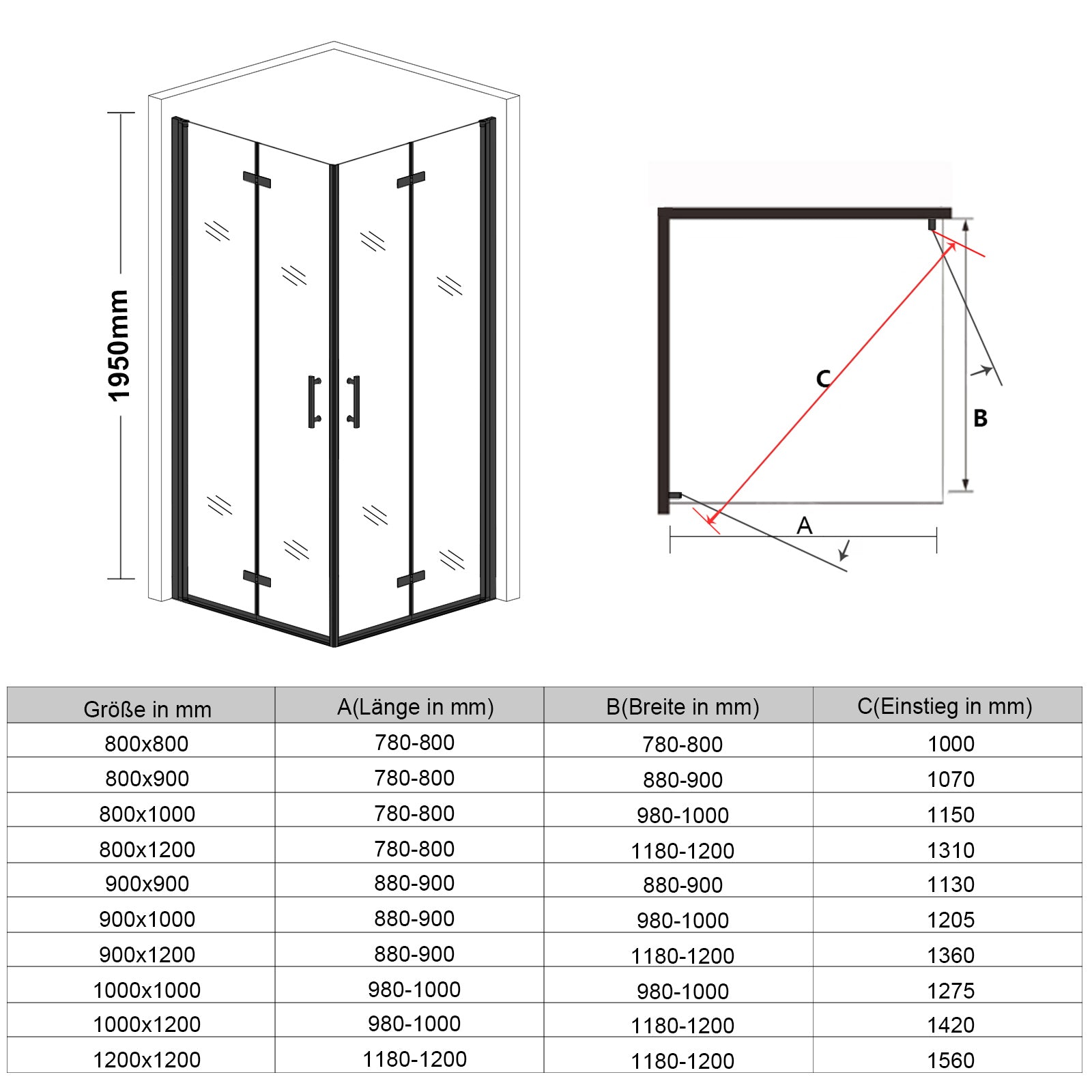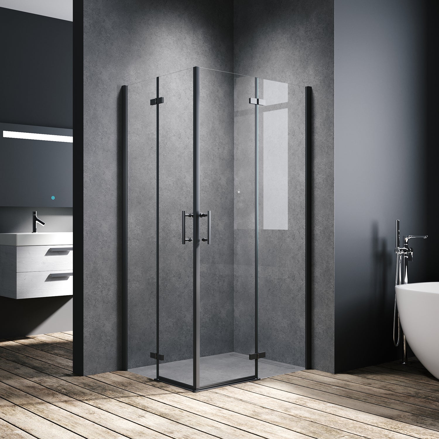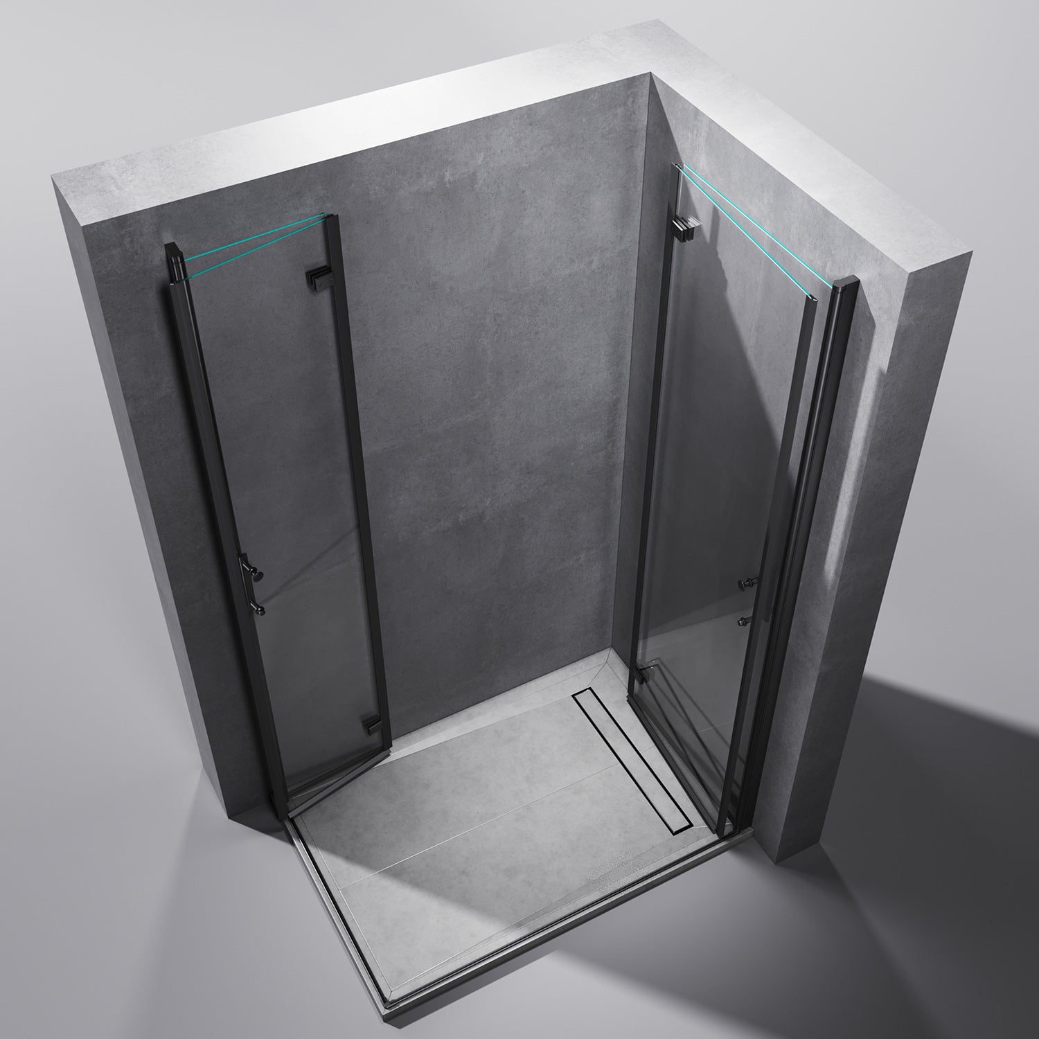 Cabine de douche accès d'angle Porte de douche pivotante noire 195cm de hauteur Avec porte pivotante Cabine de douche sans cadre