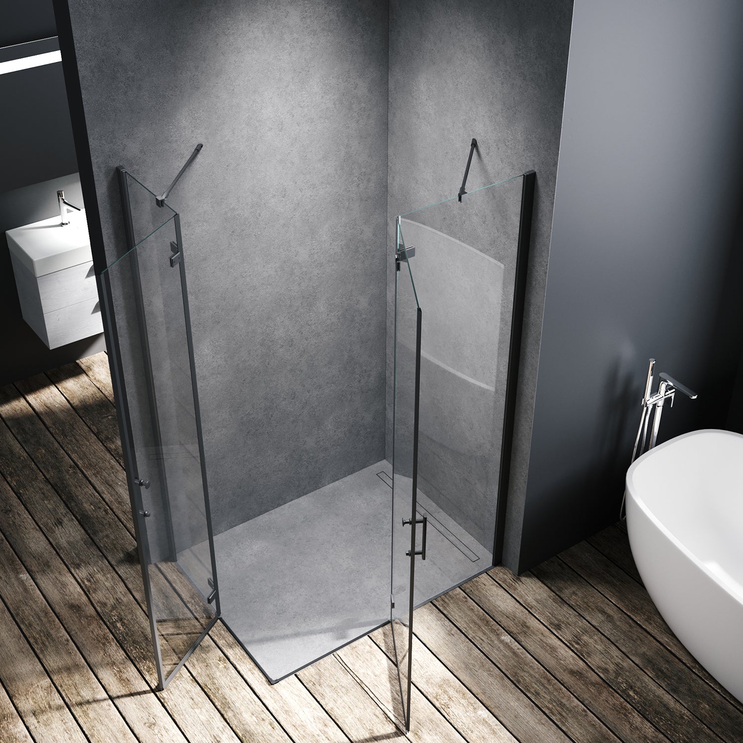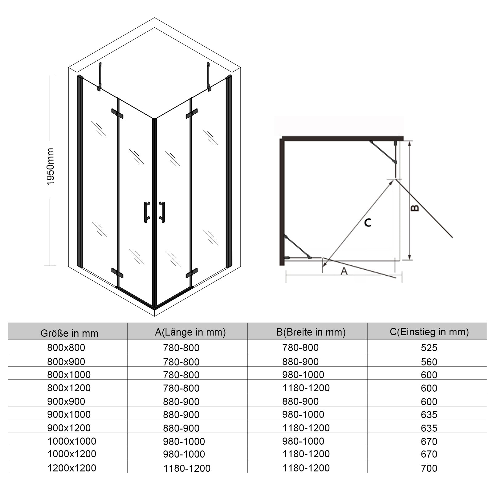 • Encombrement réduit: Extra grand espace d'ouverture, la porte de douche peut être pliée.