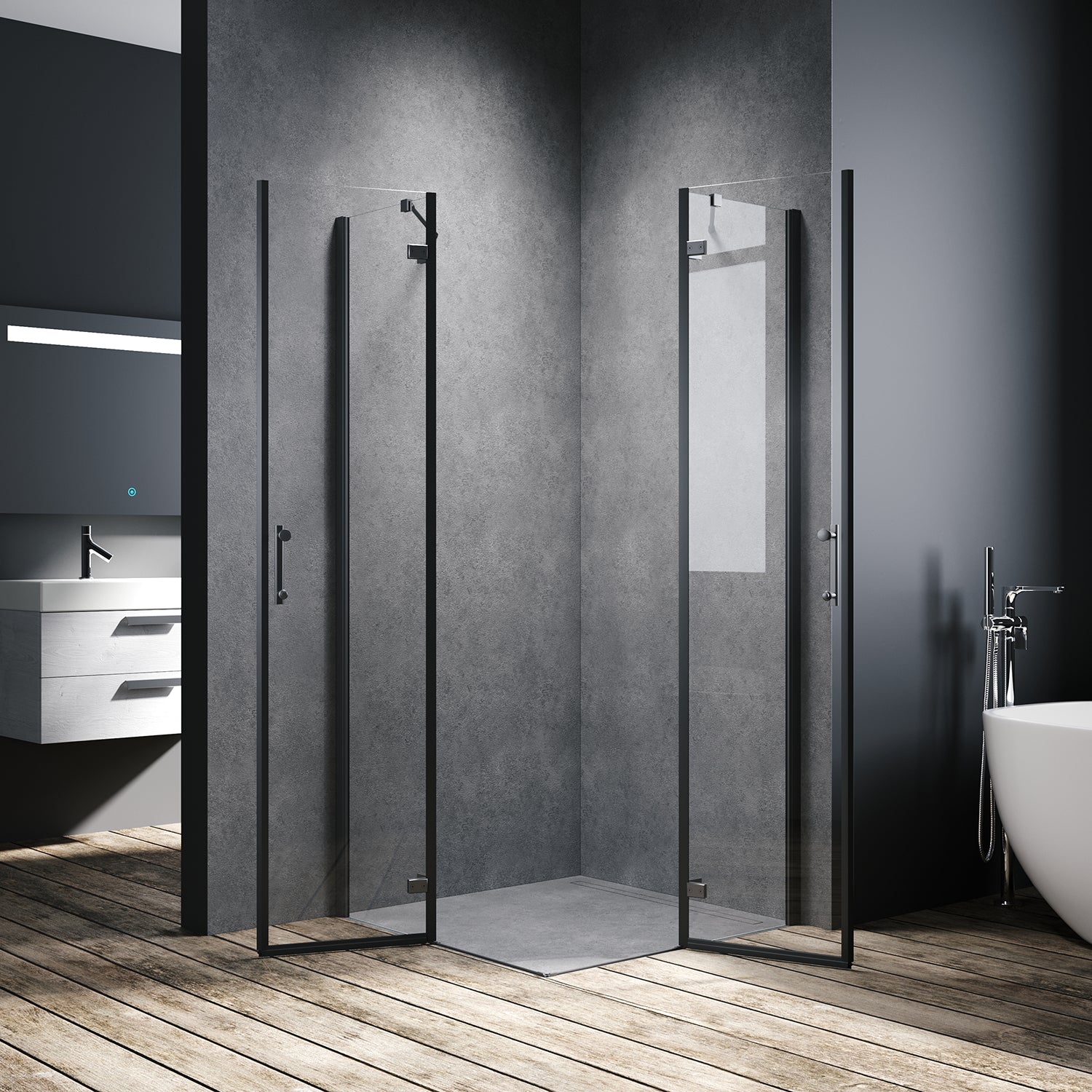 Cabine de douche accès d'angle Verre de sécurité 6mm Cadre en aluminium Hauteur 195cm noir