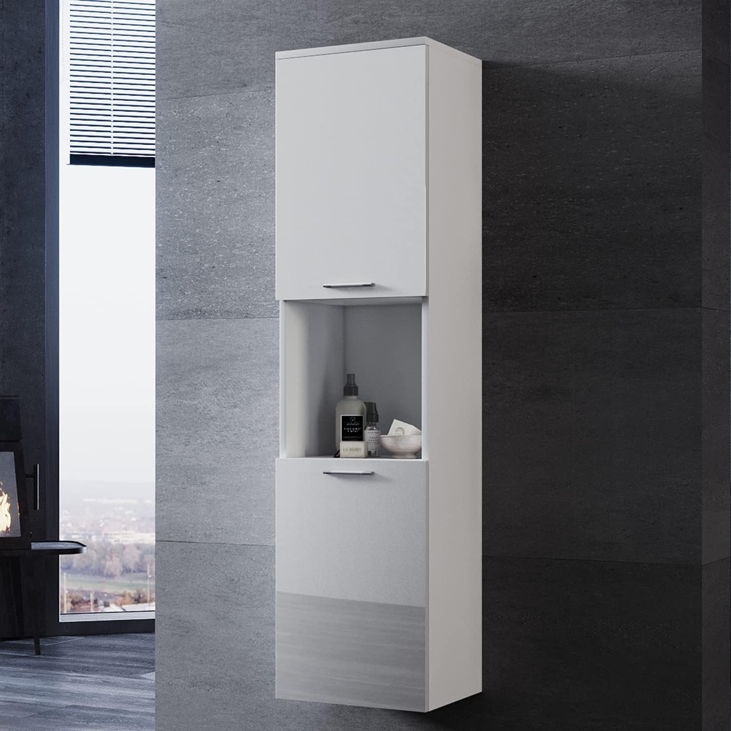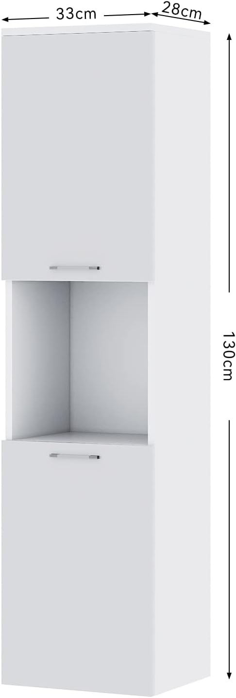 Meuble de Salle de Bain - Colonne de salle de bain 130x33x28cm Étanche et silencieux il permet de gagner de l'espace au sol - Blanc