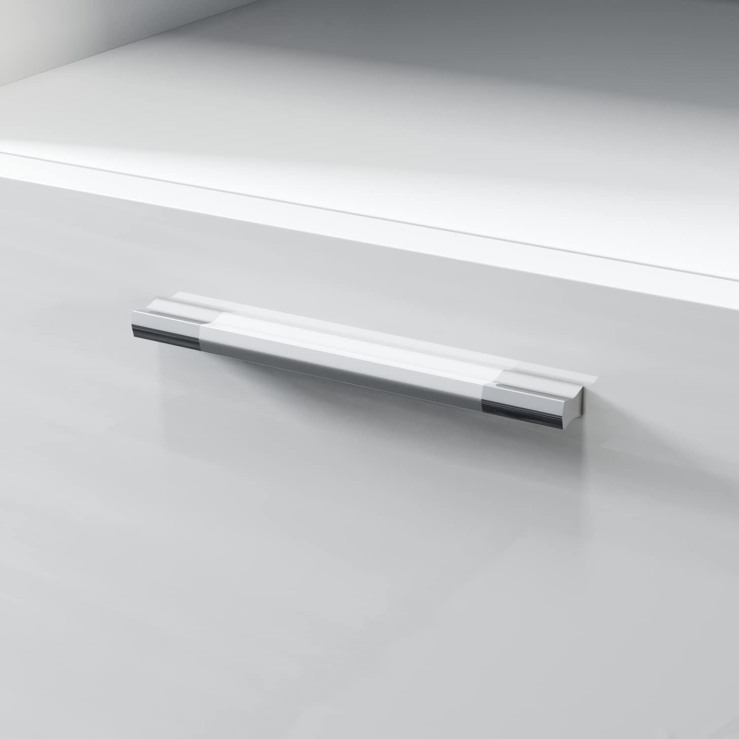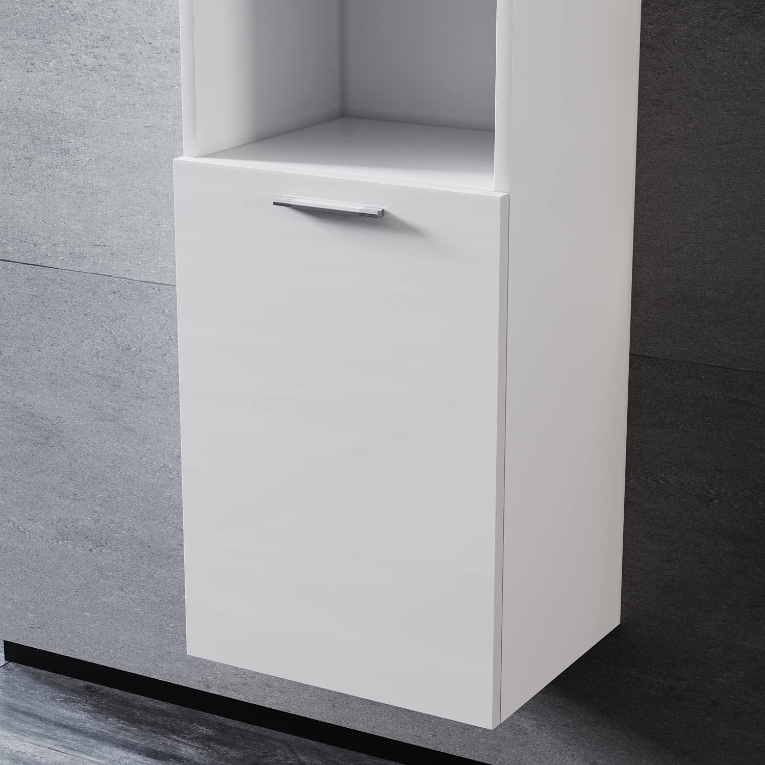 • En matériaux de qualité : Les portes de l'armoire sont brillantes et les parois latérales sont en panneaux de particules blancs avec une finition mélaminée.