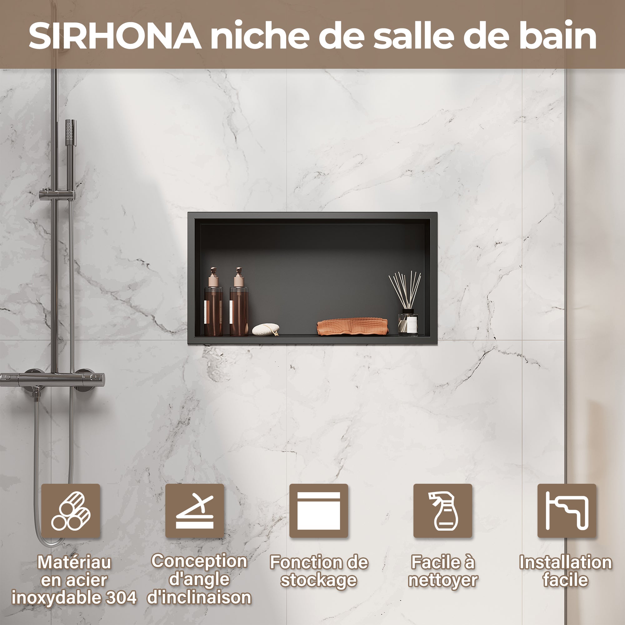 Niche murale de douche en acier inoxydable, niche de douche encastrée, étagère individuelle de stockage pour salle de bains, pas de carrelage nécessaire, 60 x 30 x 10 cm, noir