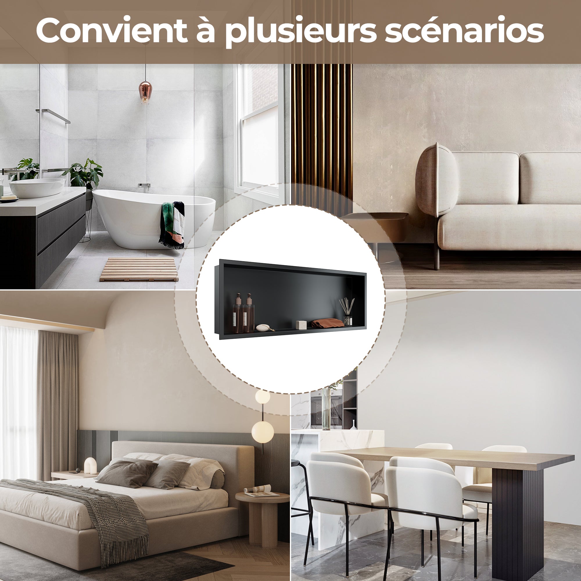 • 【Apparence minimaliste】 La niche murale noire en creux a un design moderne et simple, une surface noire mate élégante et est polyvalente pour différents styles d'intérieur.