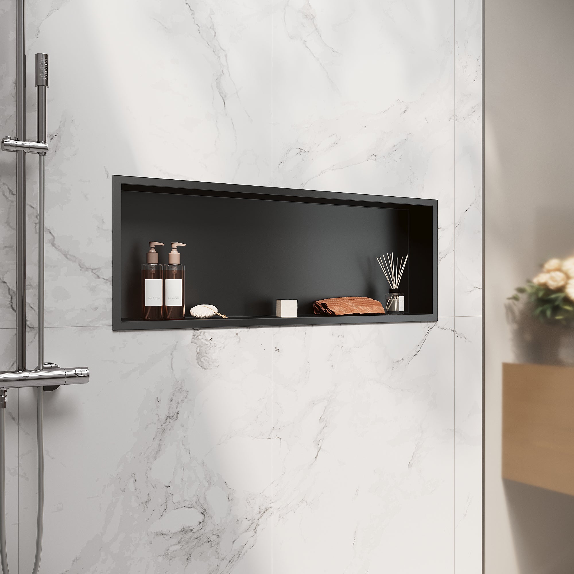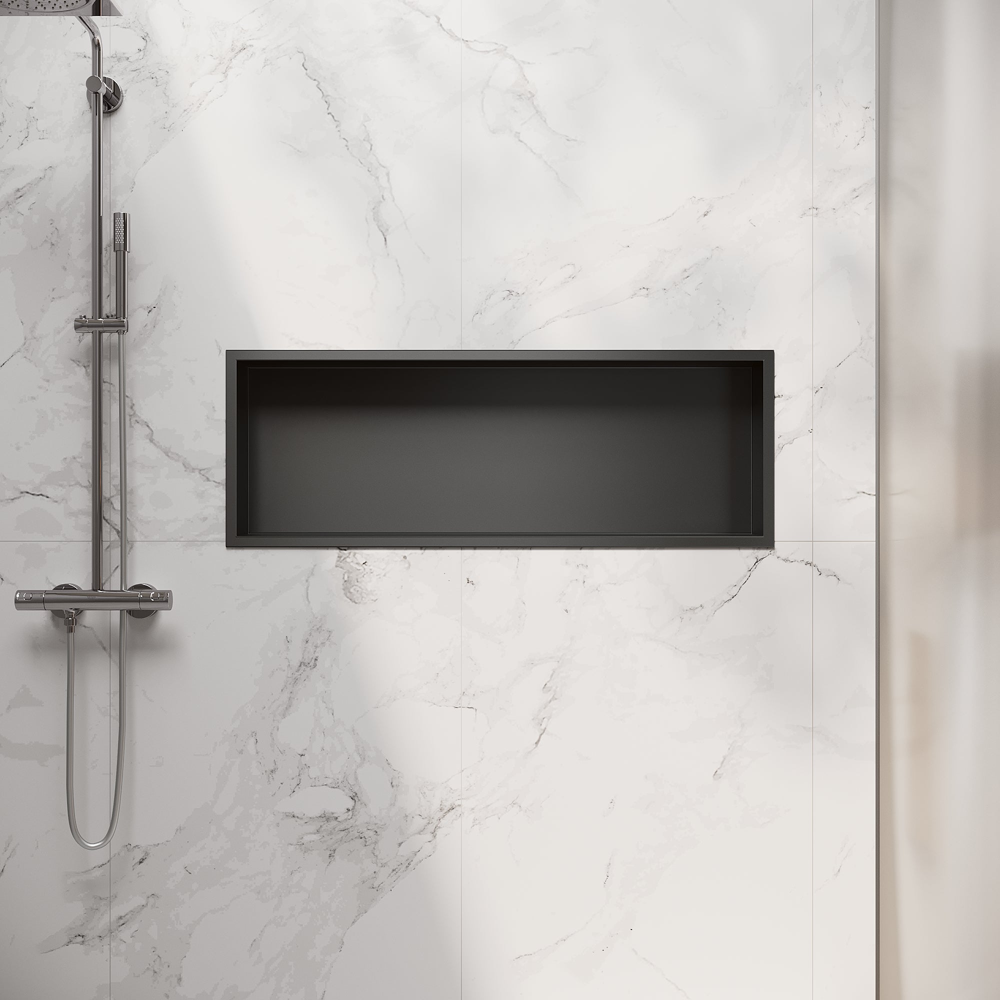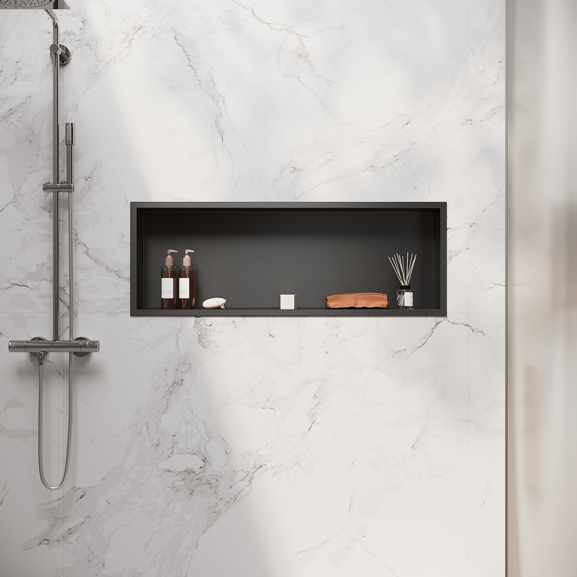 Niche murale de douche en acier inoxydable, niche de douche encastrée, étagère unique de stockage pour salle de bains, pas de carrelage nécessaire, 90 x 30 x 10 cm, noir