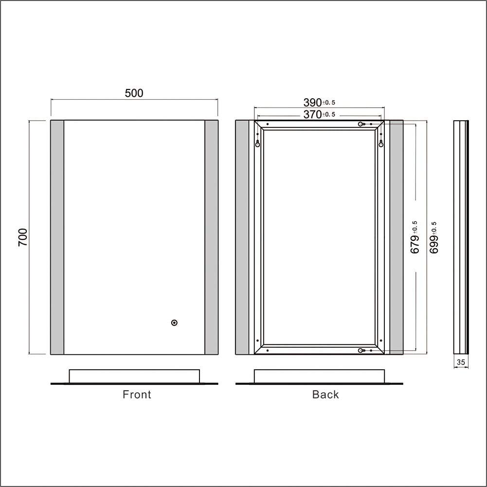 • LED à économie d'énergie, à commande miroir avec connexion au secteur, pas de batterie.