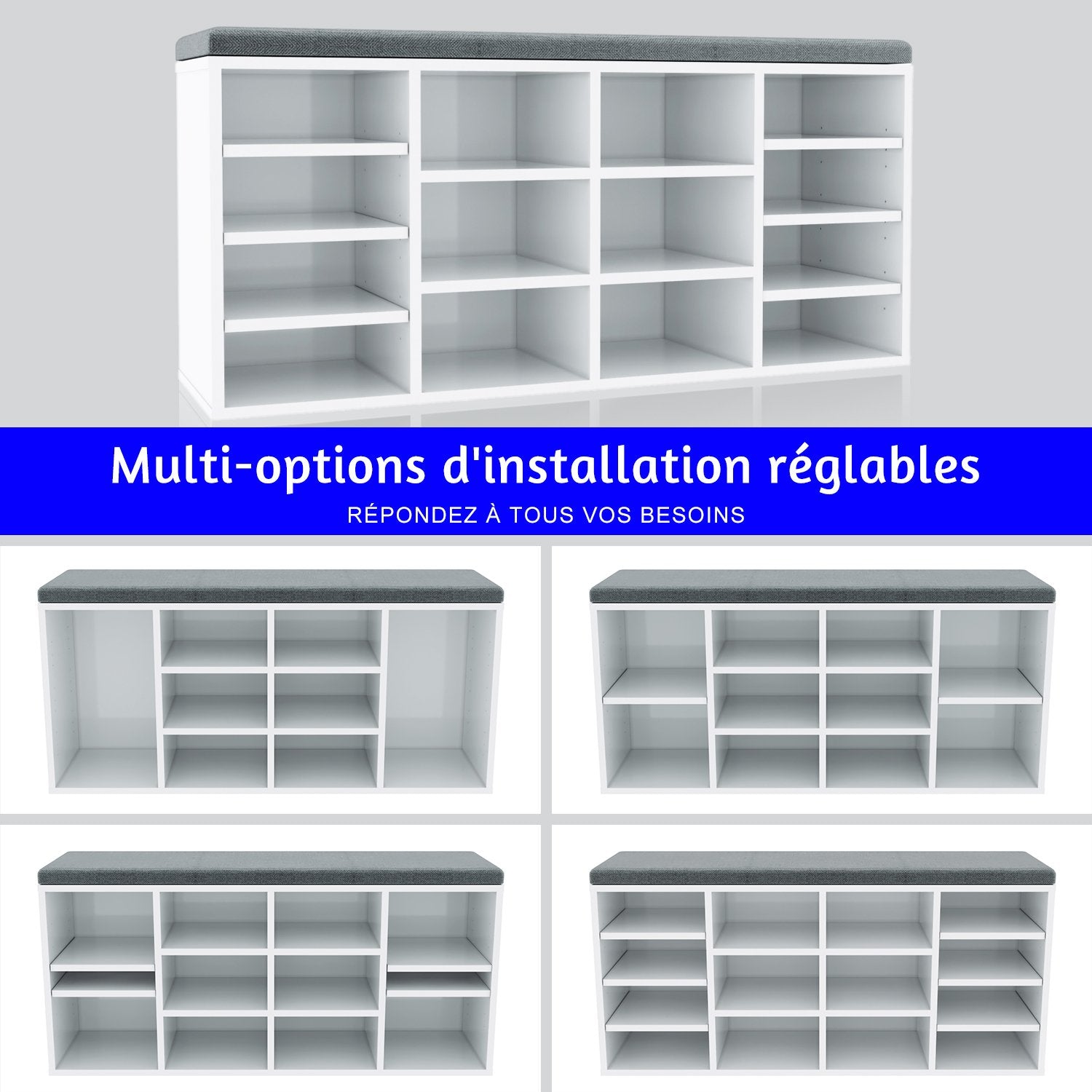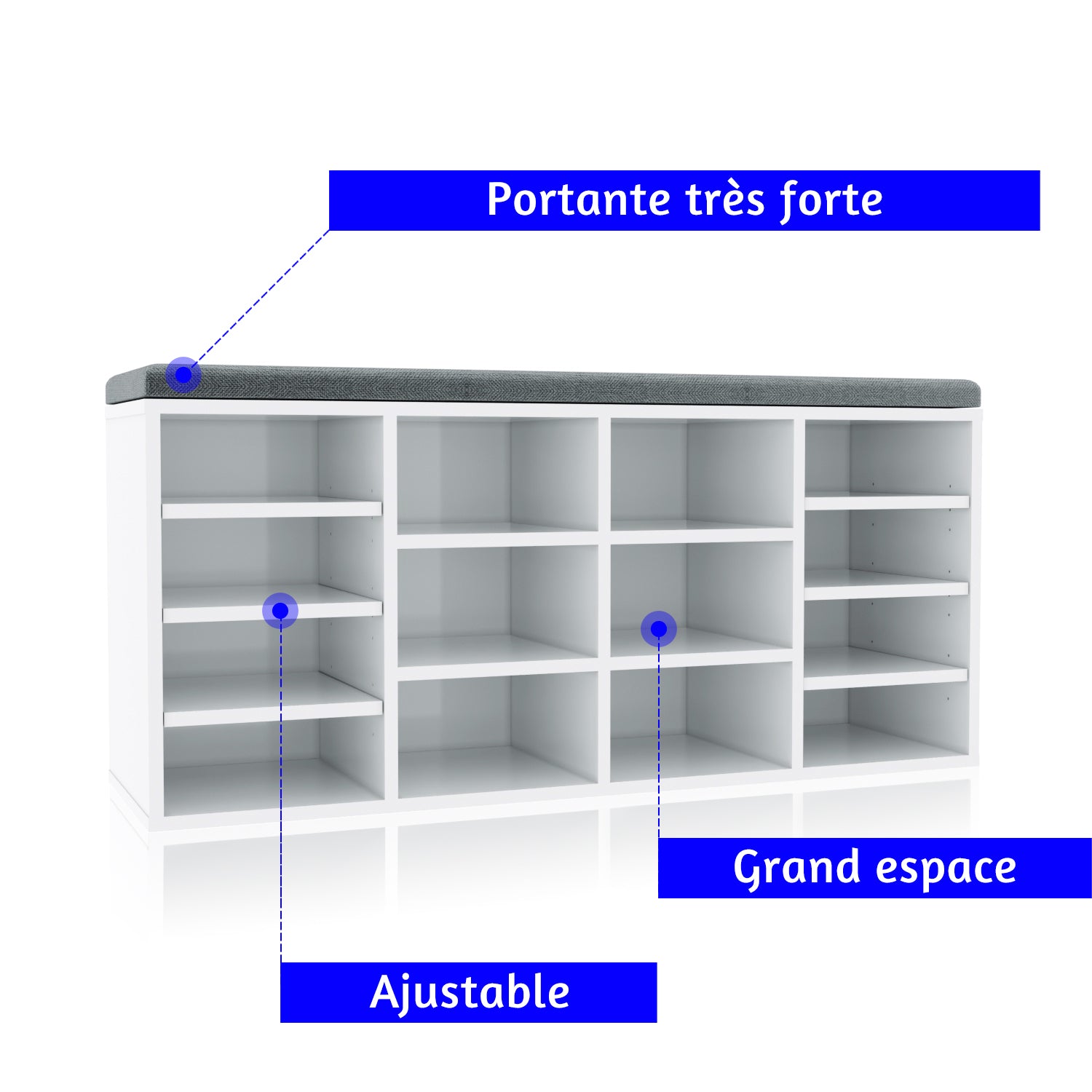 • Espace plus grande:103,5 x 30 x 48 cm ; Peut contenir 14 paires de chaussures adultes ; 6 compartiments fixes et 6 d'étagères ajustables.