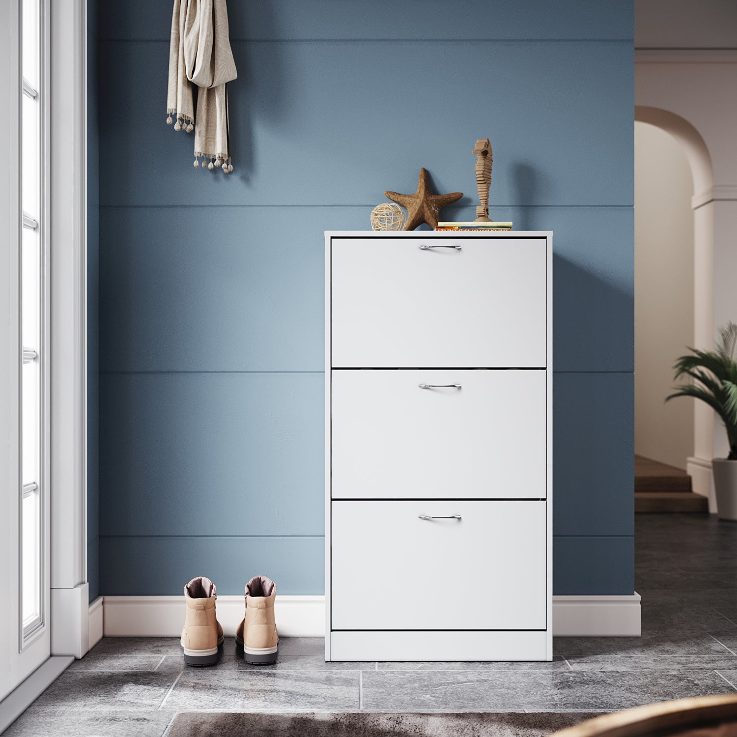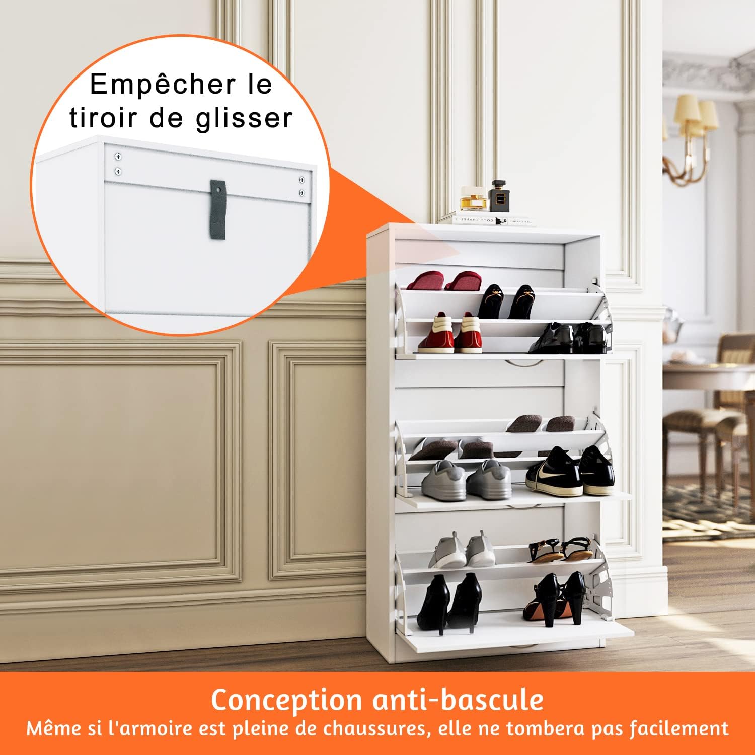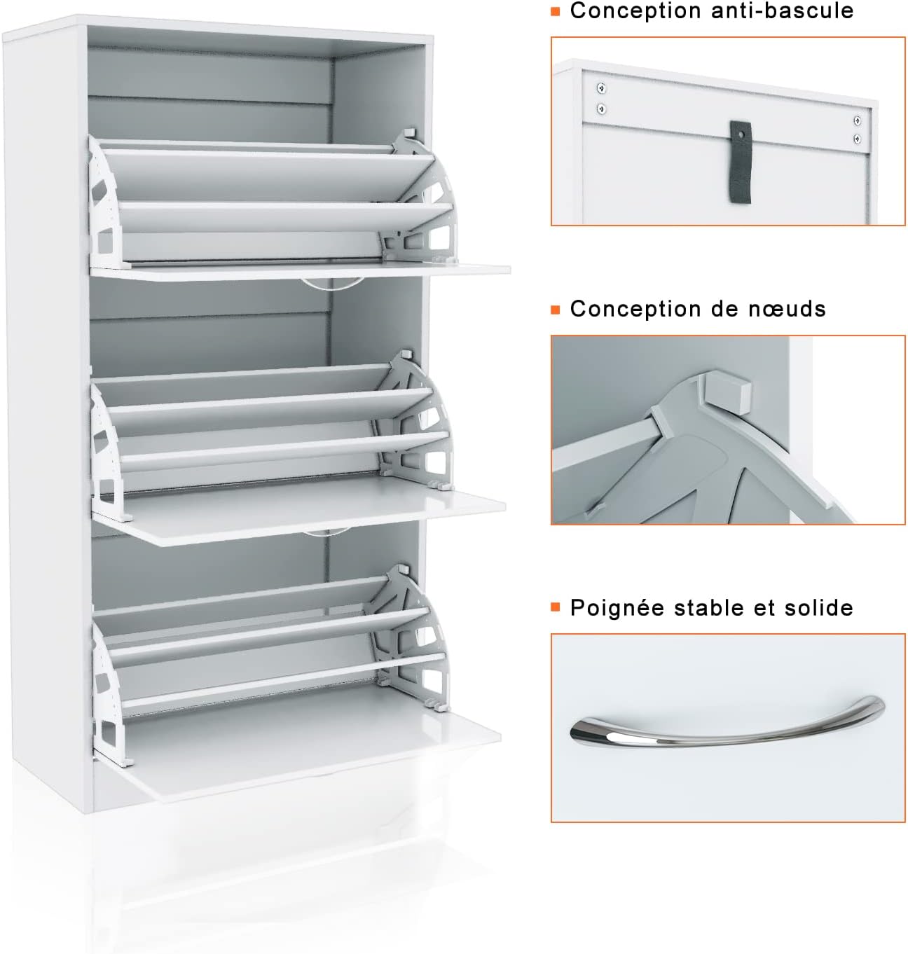 • Espace plus grande:63 x 30 x 120cm ; Peut contenir 27 paires de chaussures adultes ; 3 abattants, 3 espaces de rangement chaque tiroir; Cloisons amovibles réglables.