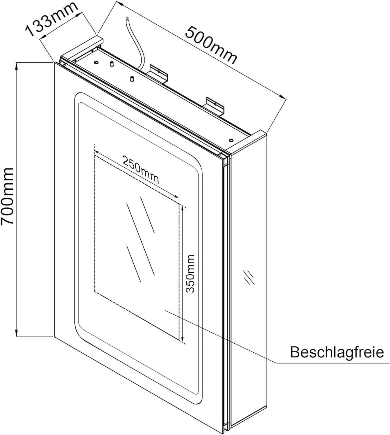 SIRHONA Armoire de salle de bain LED avec éclairage 50 × 70 cm En aluminium anti-buée Charnière sans fil Avec miroir et prise IP44 Waterciht