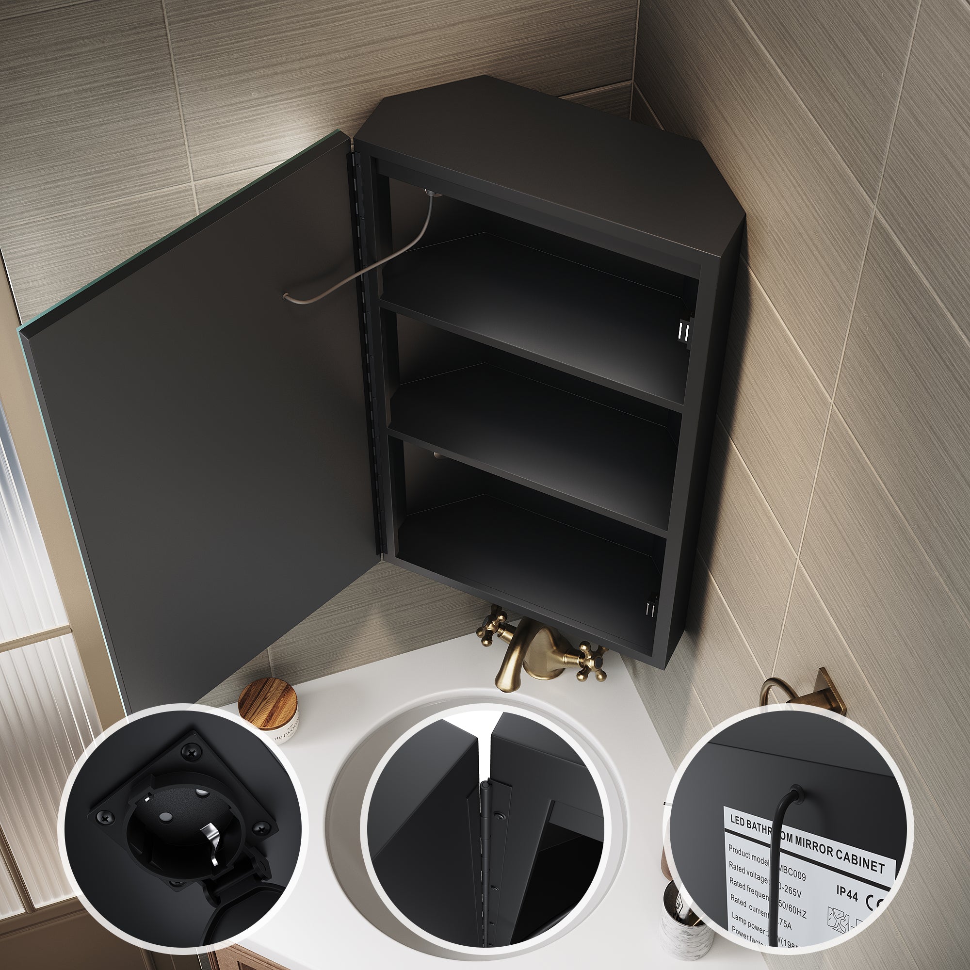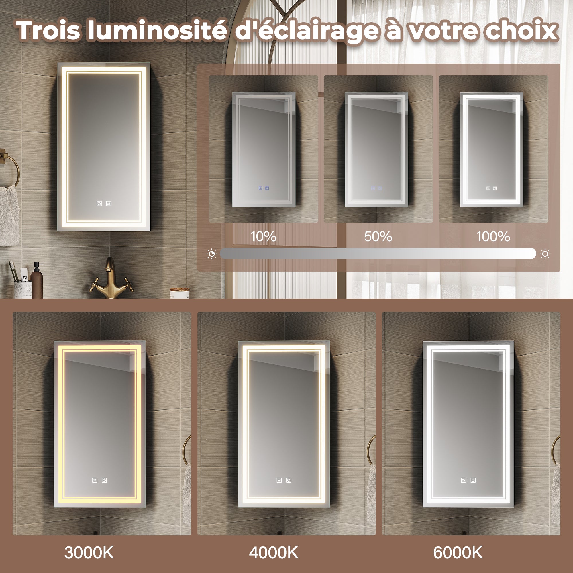 SIRHONA Armoire de Toilette Miroir, Armoire Murale avec Éclairage LED et Prises de Courant 38.5 x 70 x 16cm