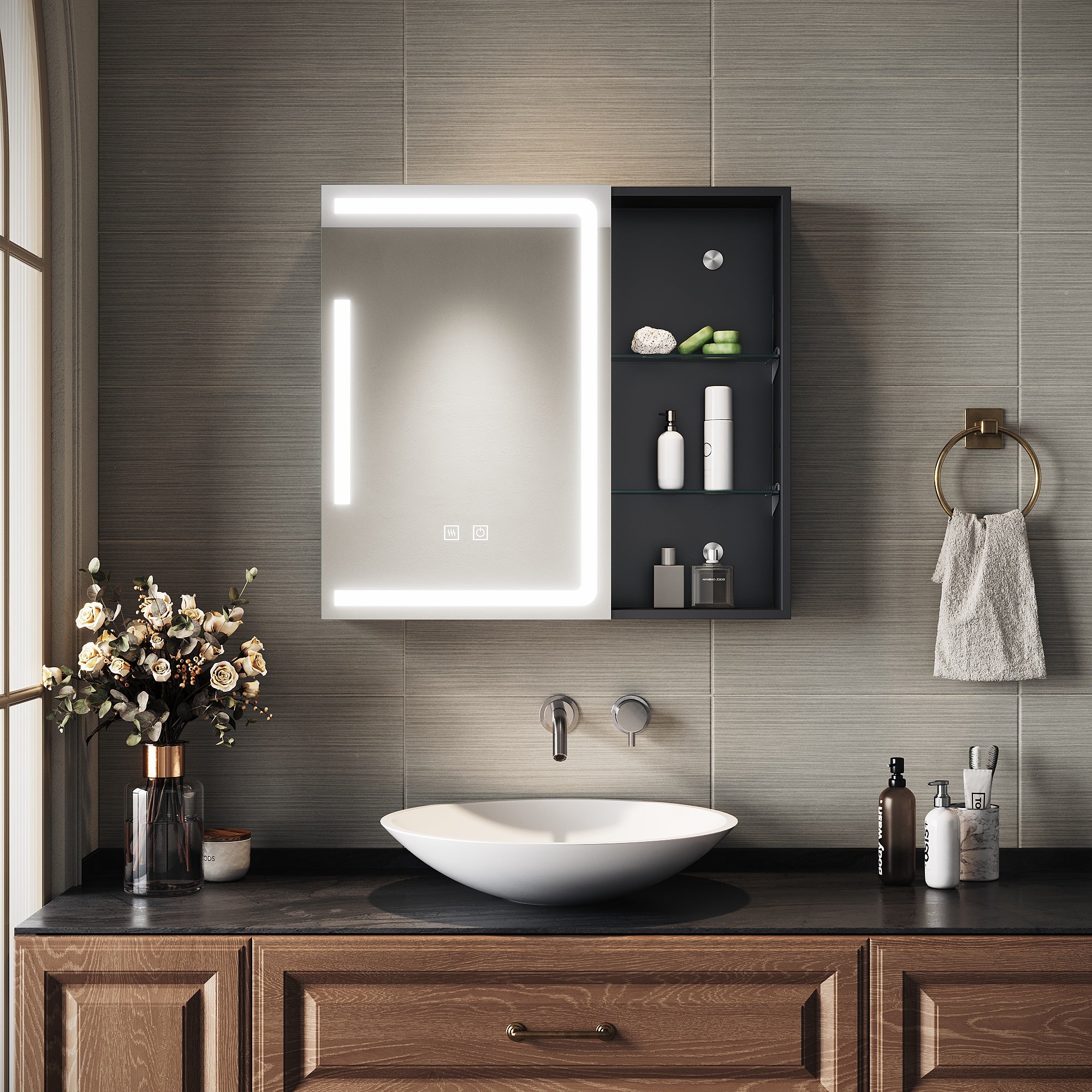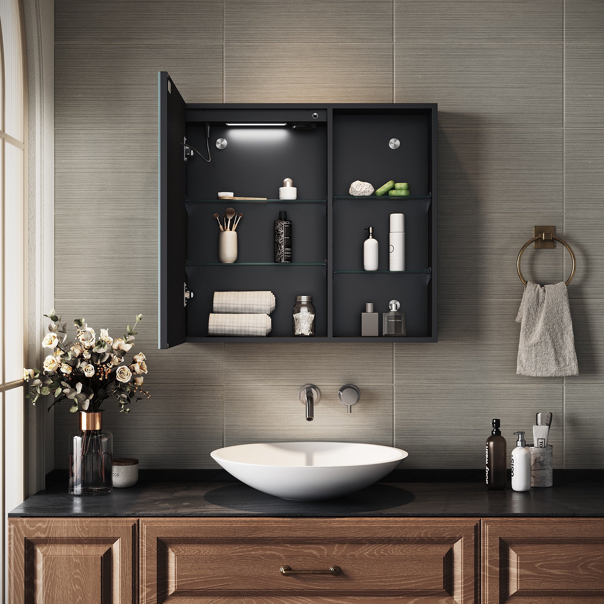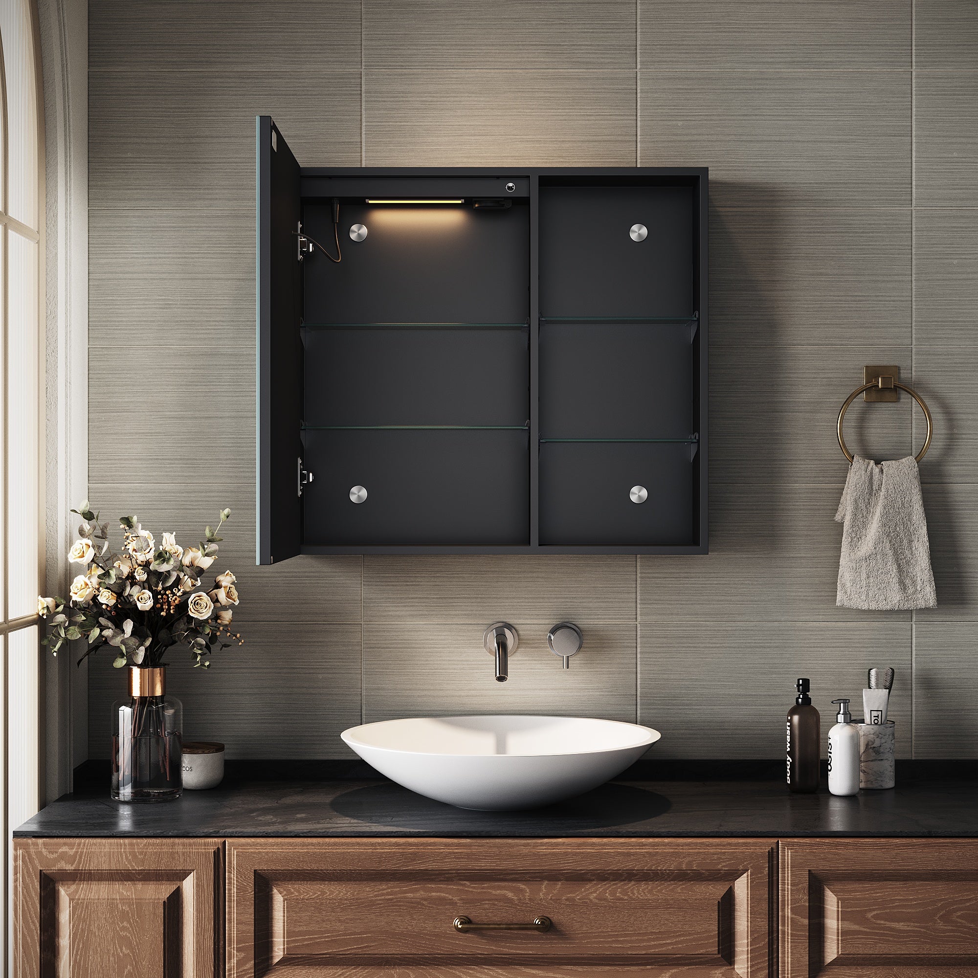 SIRHONA Armoire de Toilette Miroir, Armoire Murale avec Éclairage LED et Prises de Courant, 65 x 60 x 13cm