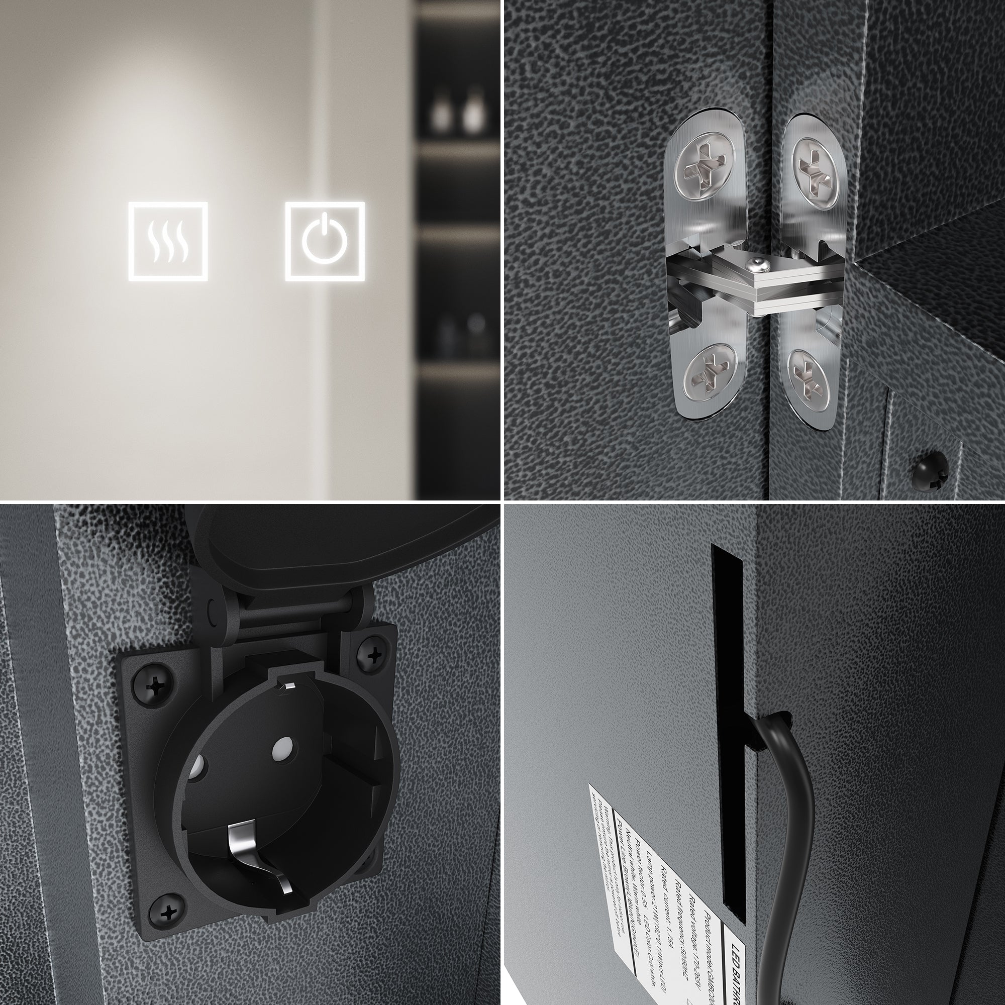 •  il suffit d'appuyer légèrement sur le bouton de désembuage pour que la buée se dissipe dans le miroir. La fonction s'éteint automatiquement après une heure d'inactivité. Idéal pour les salles de bains, les cuisines, les salons, les chambres à coucher, les entrées, etc.