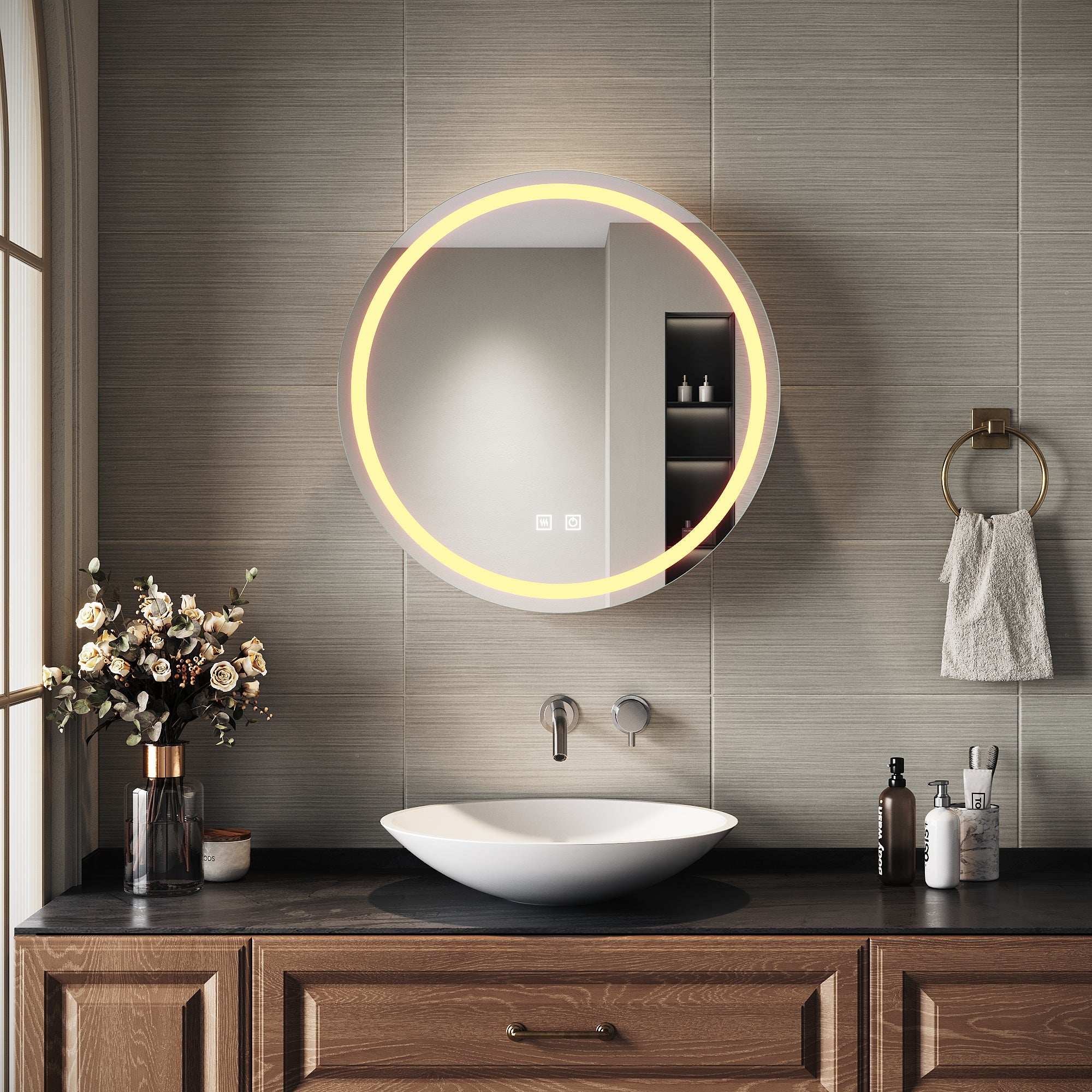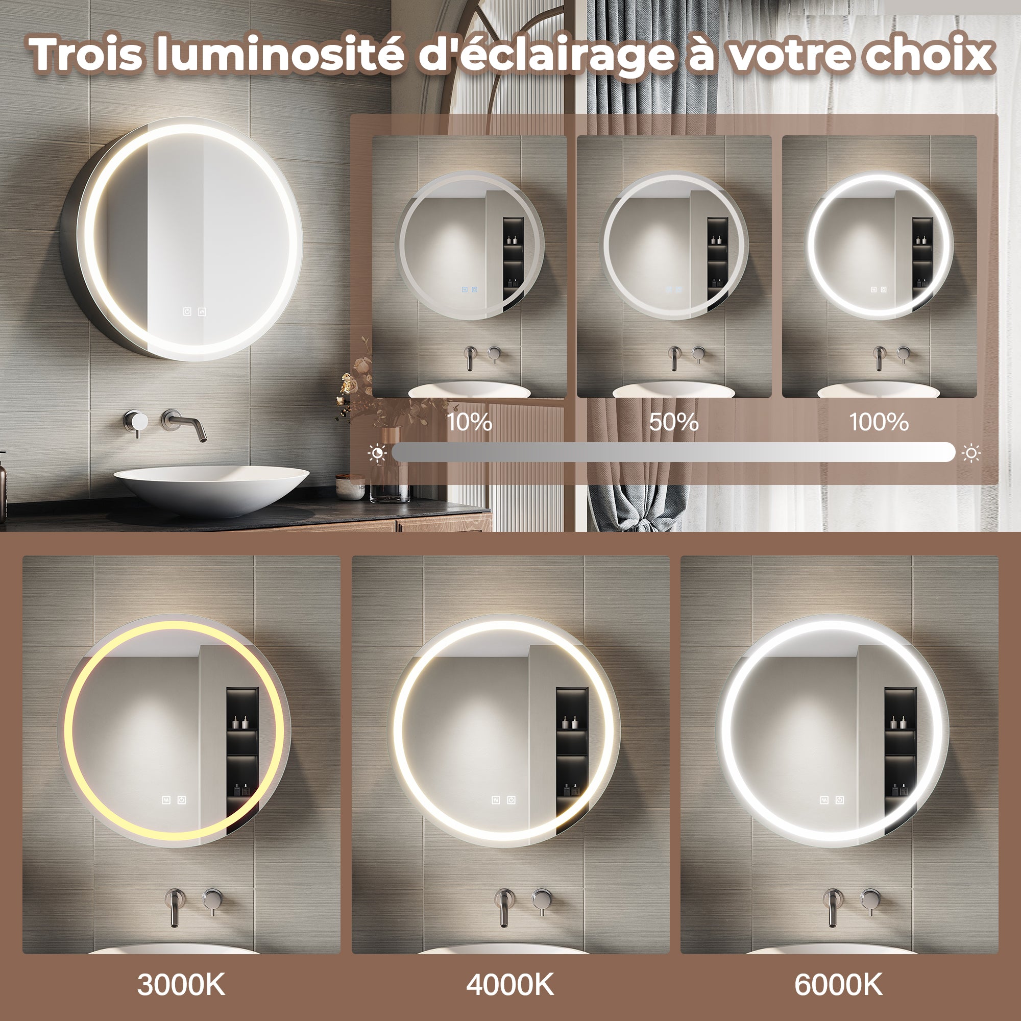 SIRHONA Armoire de Toilette Miroir, Armoire Murale avec Éclairage LED et Prises de Courant, Trois Températures de Couleur Réglables, 60 x 60 x 14cm