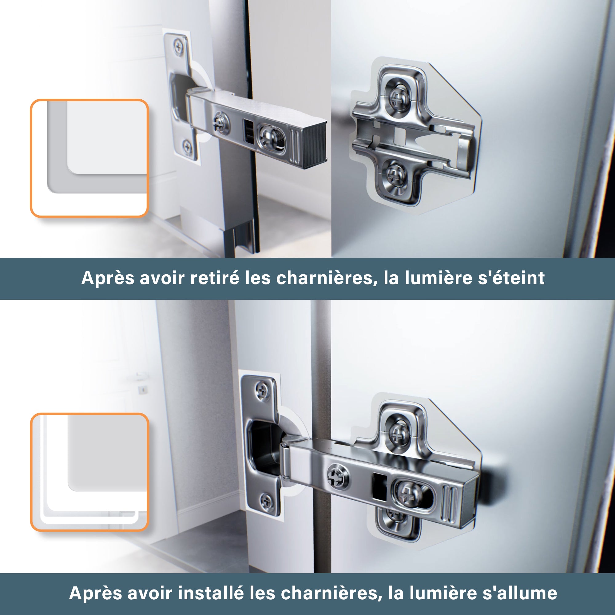 • Éclairage LED à économie d'énergie : beau et plein d'ambiance. Avec les diodes LED, la technologie moderne d'éclairage LED optimise l'efficacité énergétique avec un rendement pouvant atteindre 50%. Cela signifie que chaque miroir lumineux à LED permet d'économiser jusqu'à 80% des coûts énergétiques.