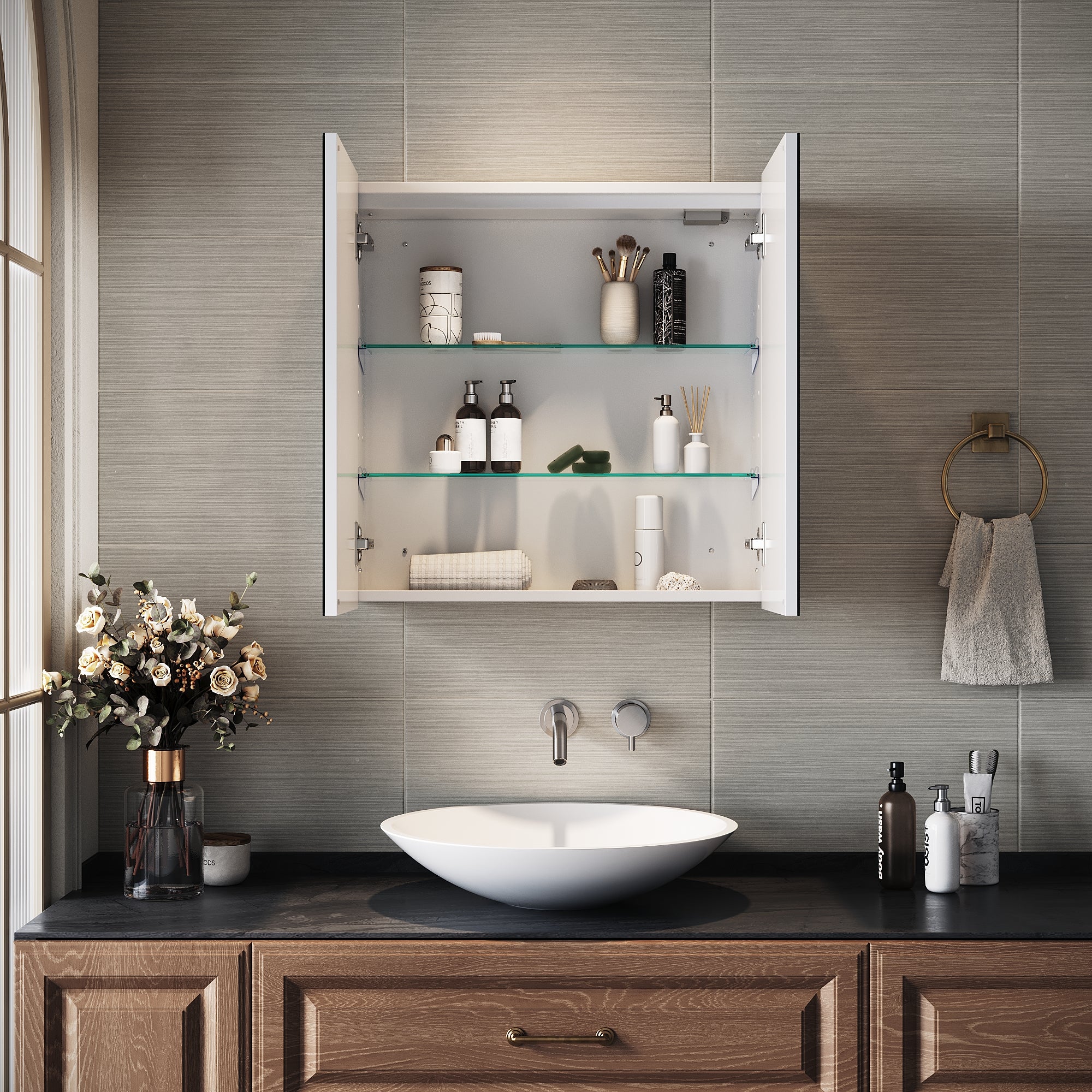 • Haute qualité : notre armoire de toilette est fabriquée en métal de première qualité et utilise des miroirs argentés sans cuivre et sans plomb avec un polissage des bords de haute qualité.