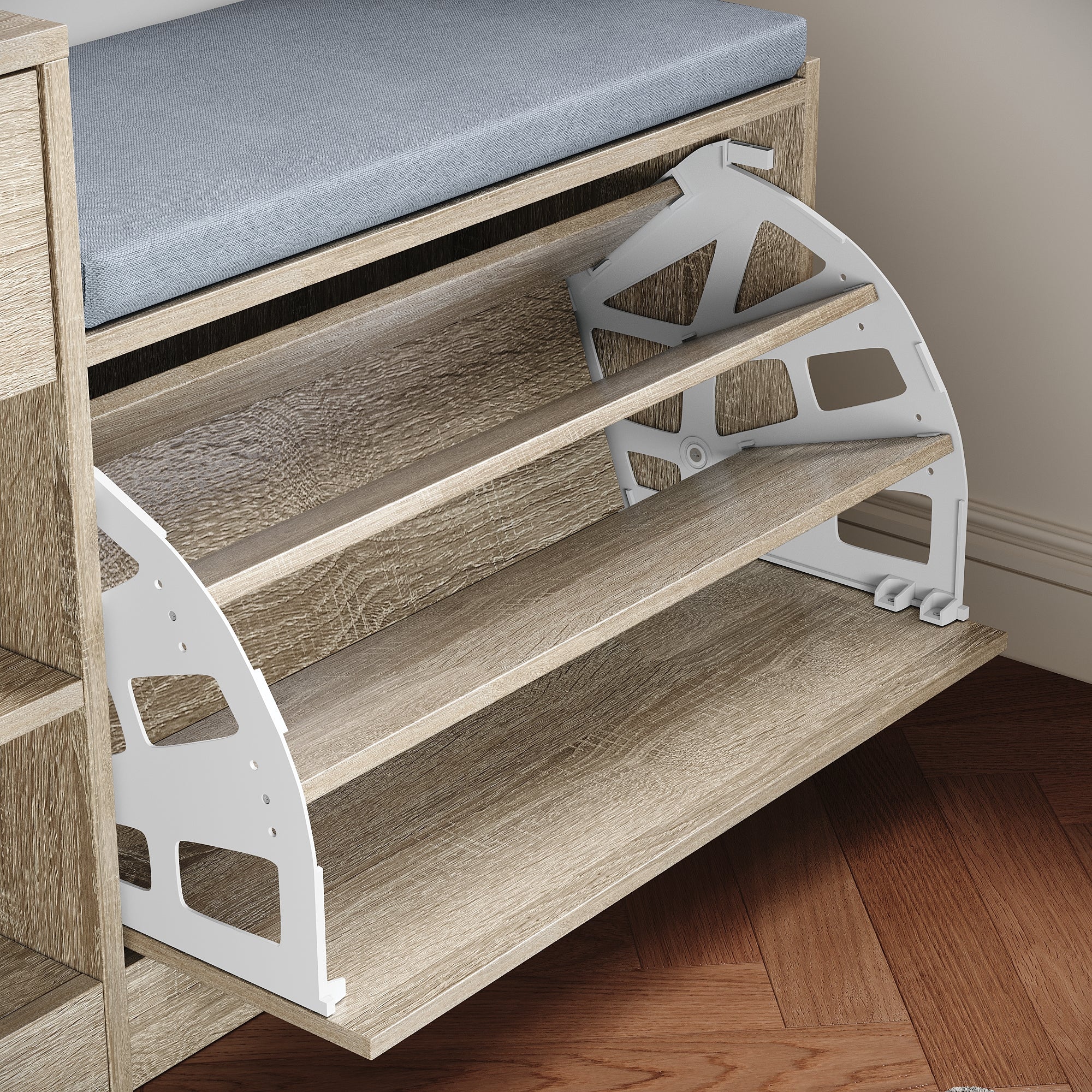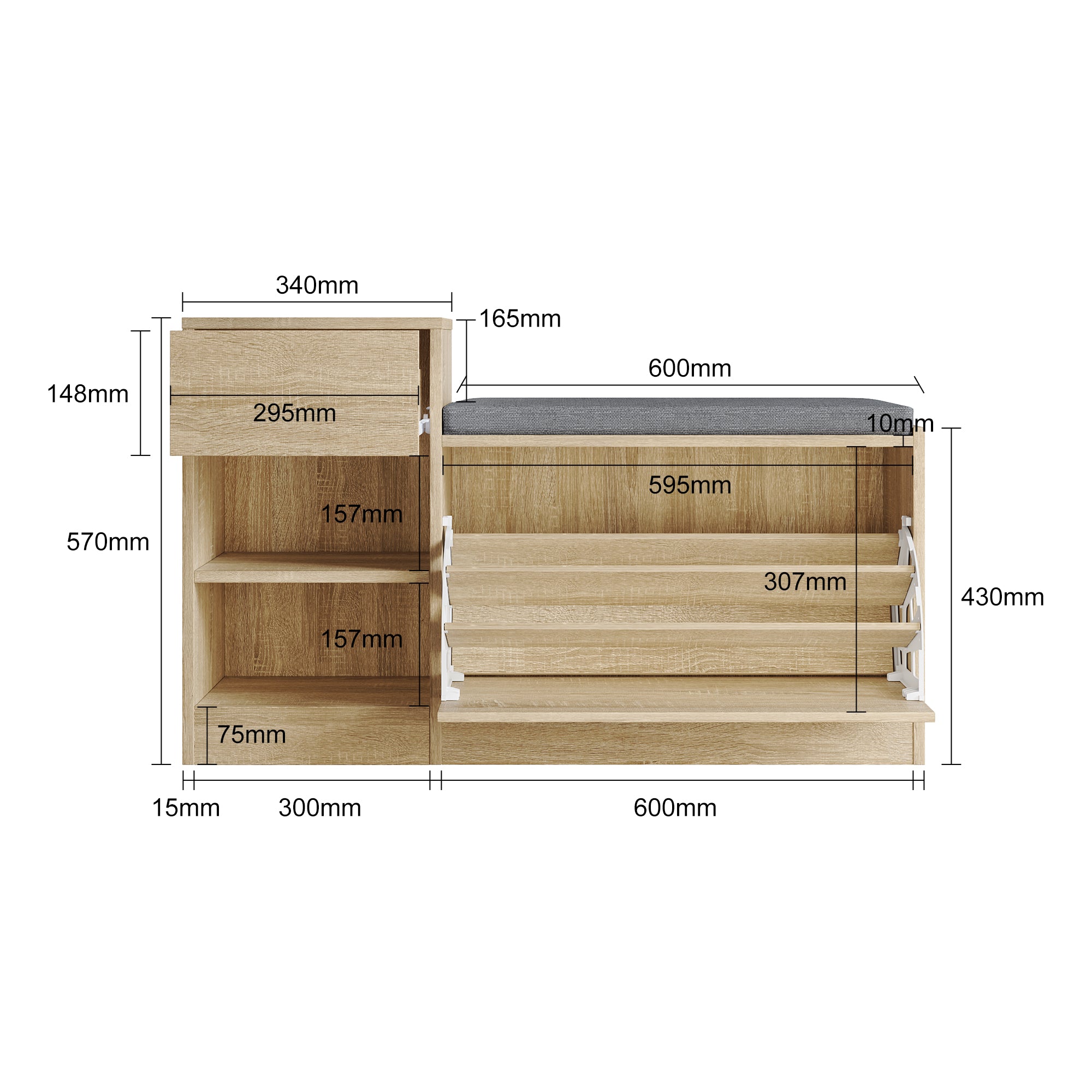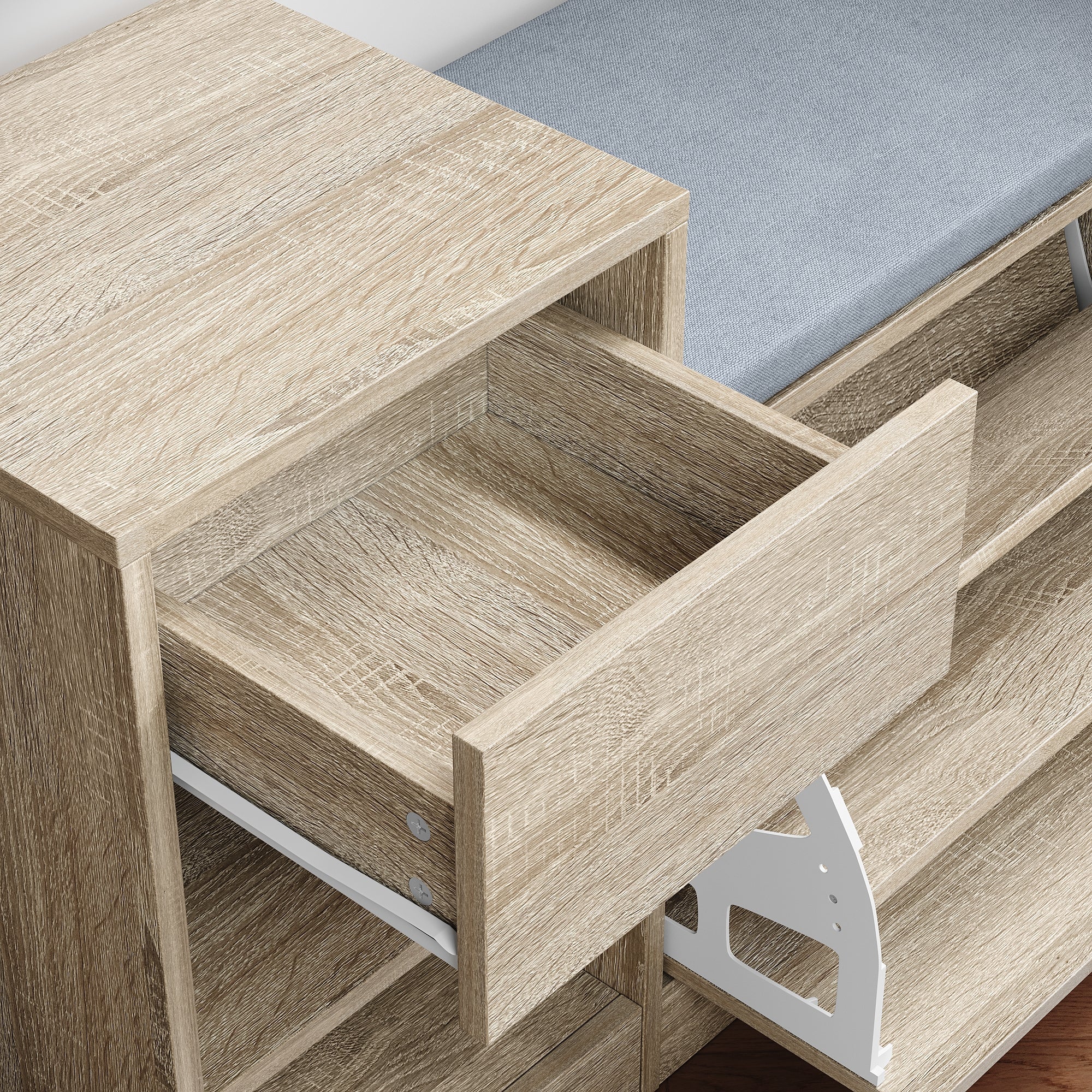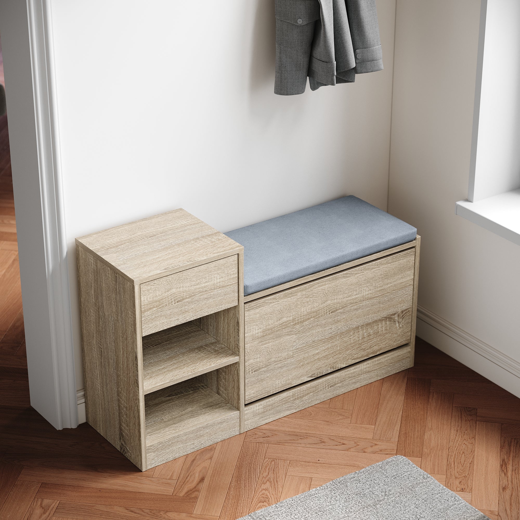 SIRHONA Banc à chaussures avec sièges, Deux compartiments ouverts, avec 1 abattant, avec tiroir, Petite armoire à chaussures 94.5x30x57cm
