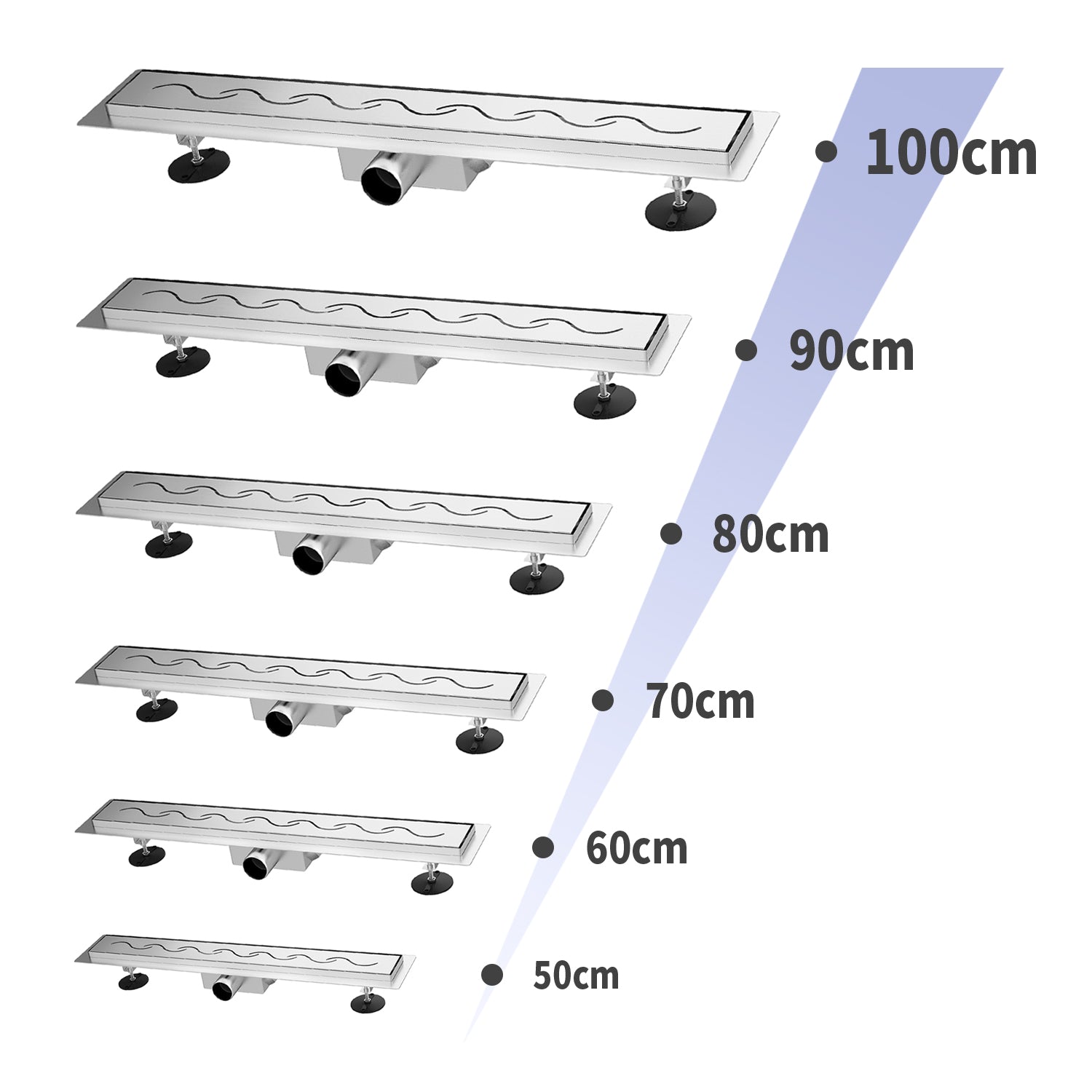 SIRHONA Caniveau de douche Siphon douche italienne, diverses Tailles au Choix 60-100cm, Acier Inoxydable