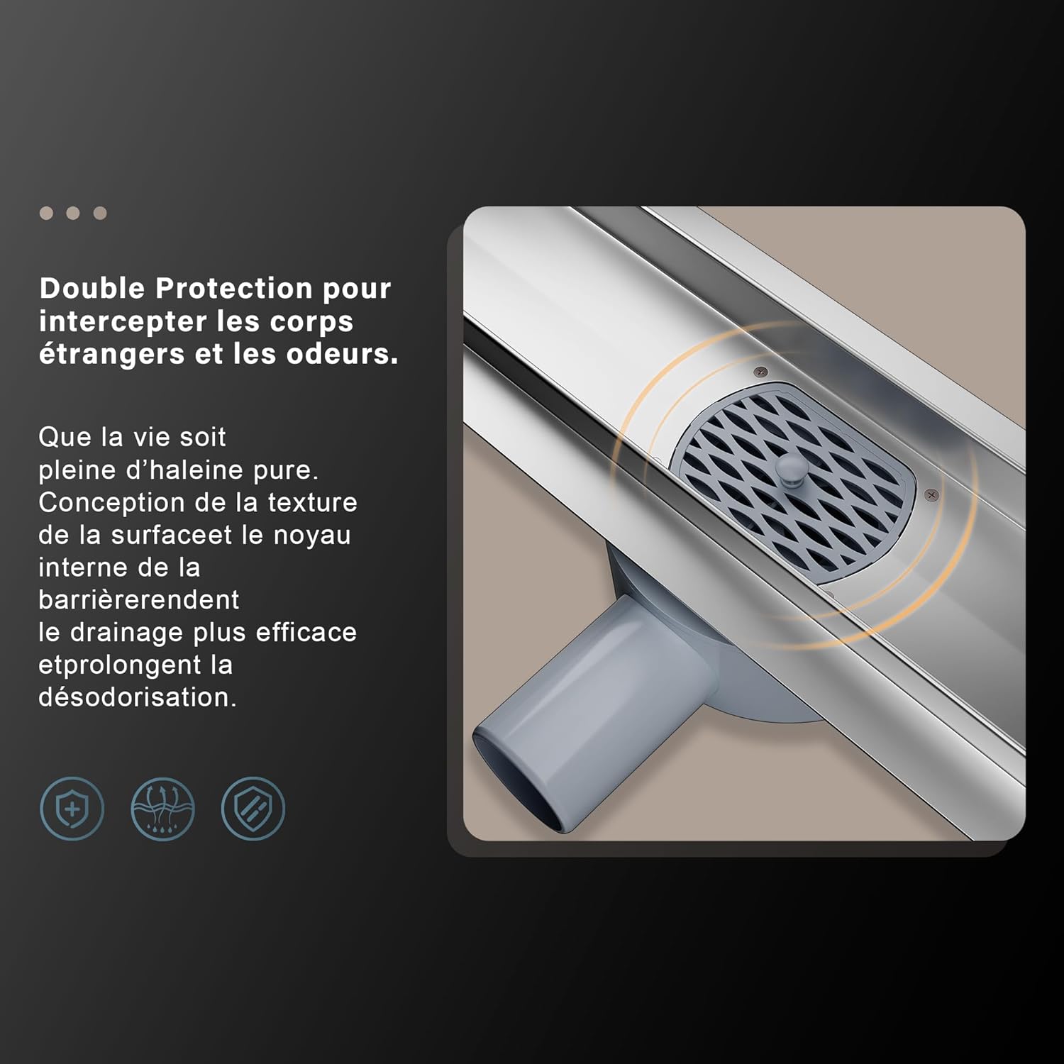 • Caniveau de douche est fabriqué en acier inoxydable 304 résistant à la rouille.