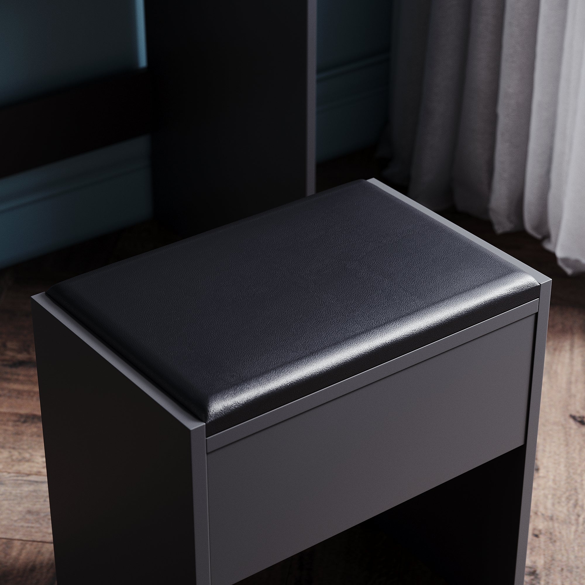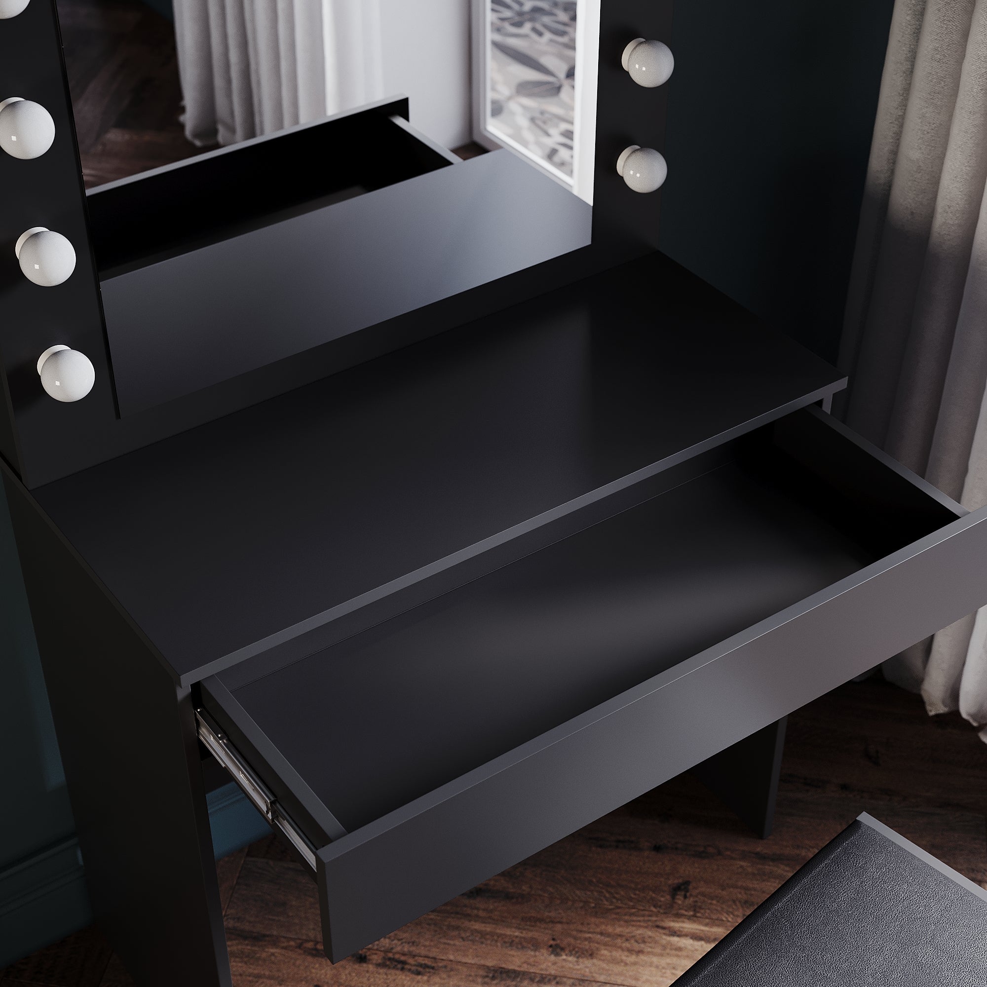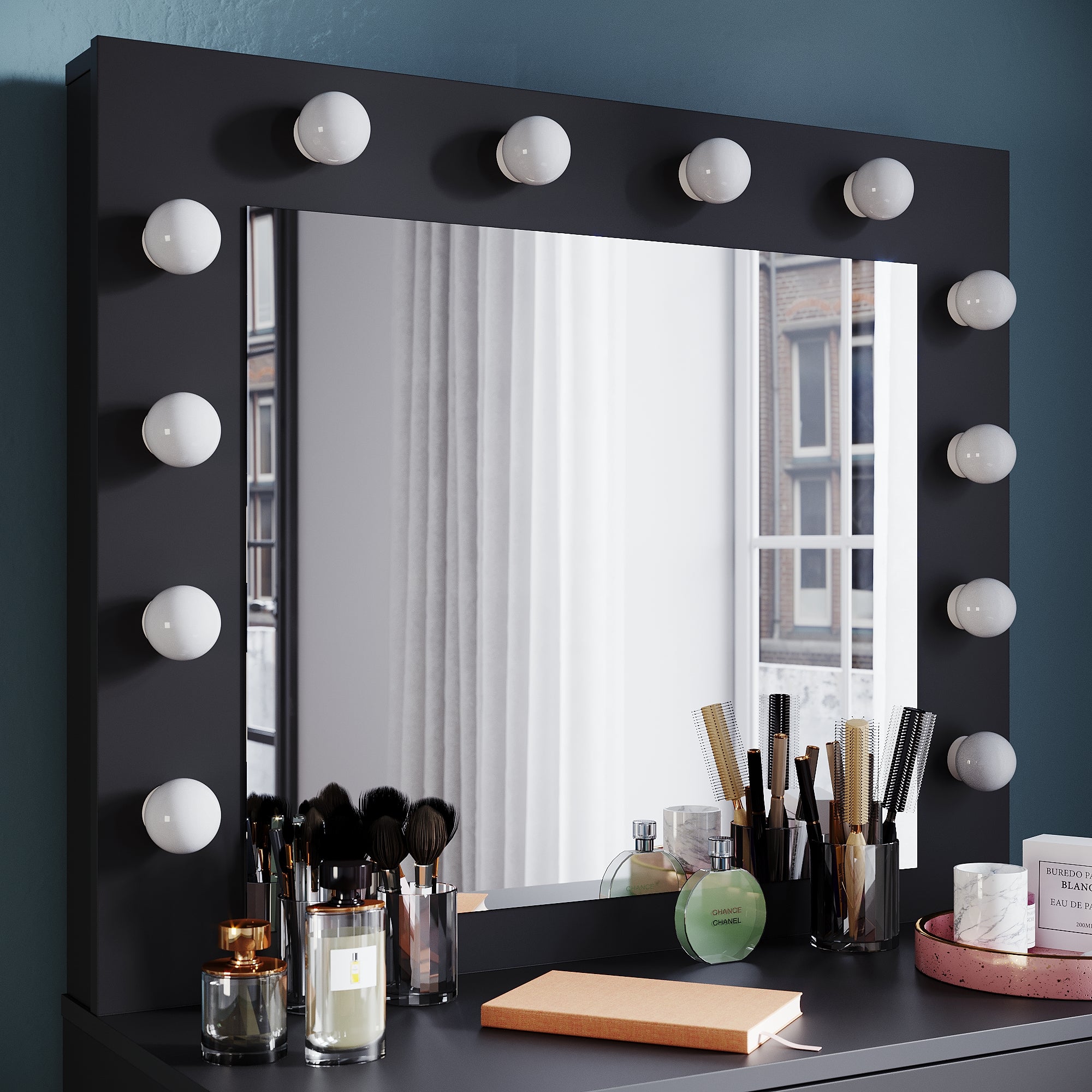 Ensemble de Coiffeuse Pratique : Coiffeuse moderne noir avec tabouret rembourré, grand miroir, 12 ampoules LED à intensité variable, 1 tiroir,... En savoir plus