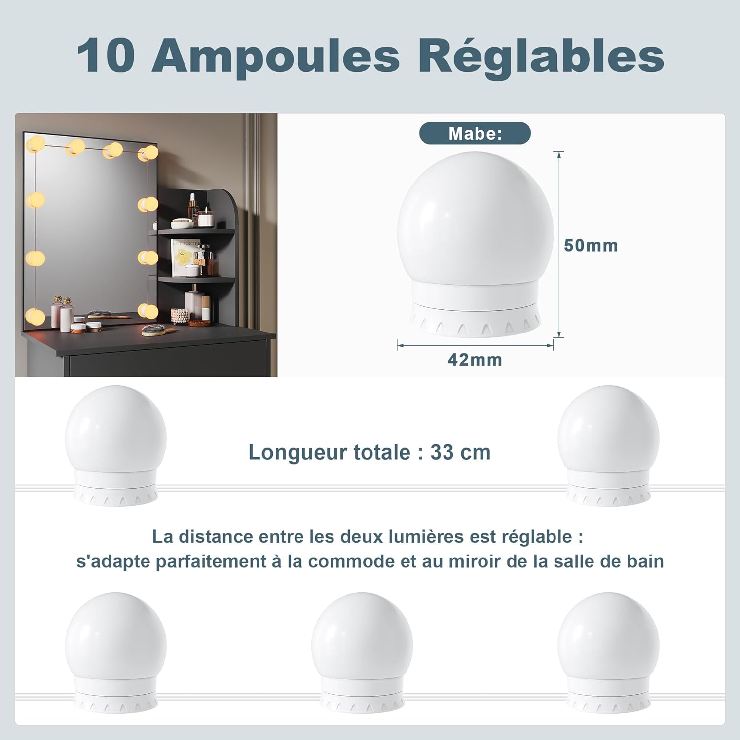 • Miroir moderne et lumineux: Miroir lumineux et spacieux pour tous vos besoins en maquillage.