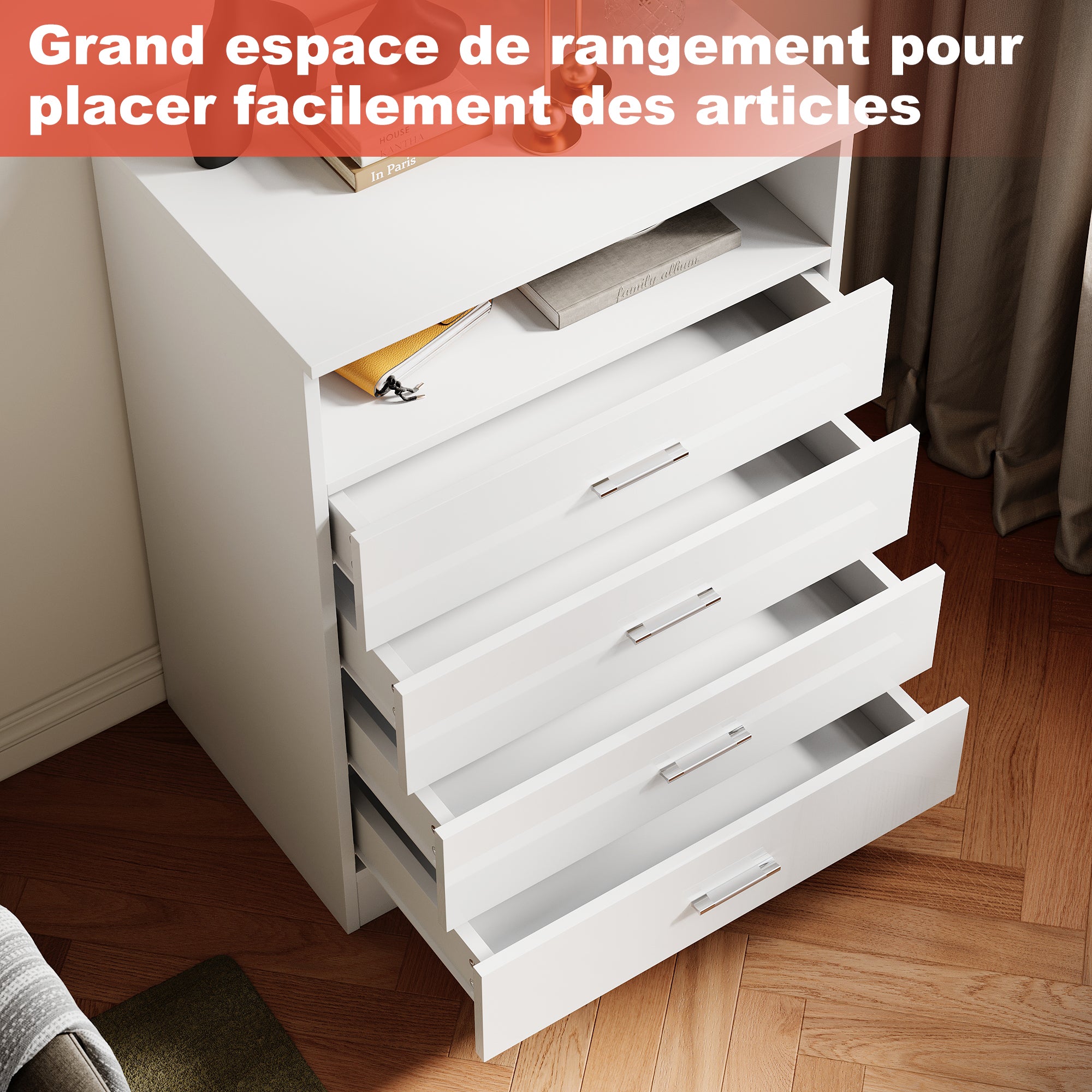 SIRHONA Commode Verticale LED 4 Tiroirs Blanche Brillante W 60 x D 40 x H 83 cm