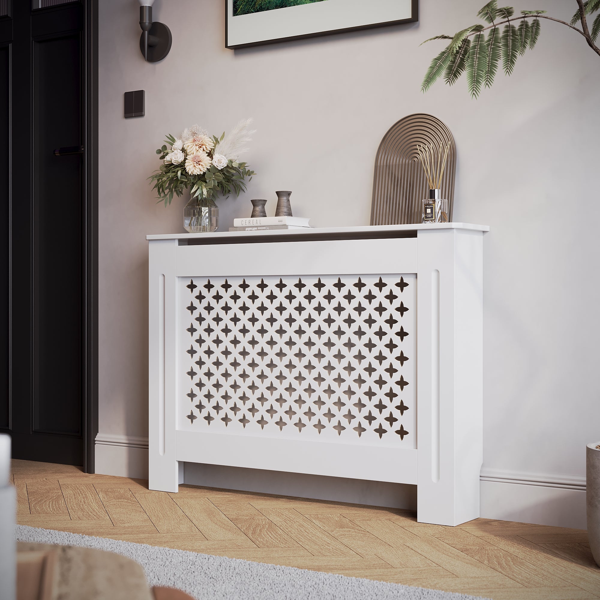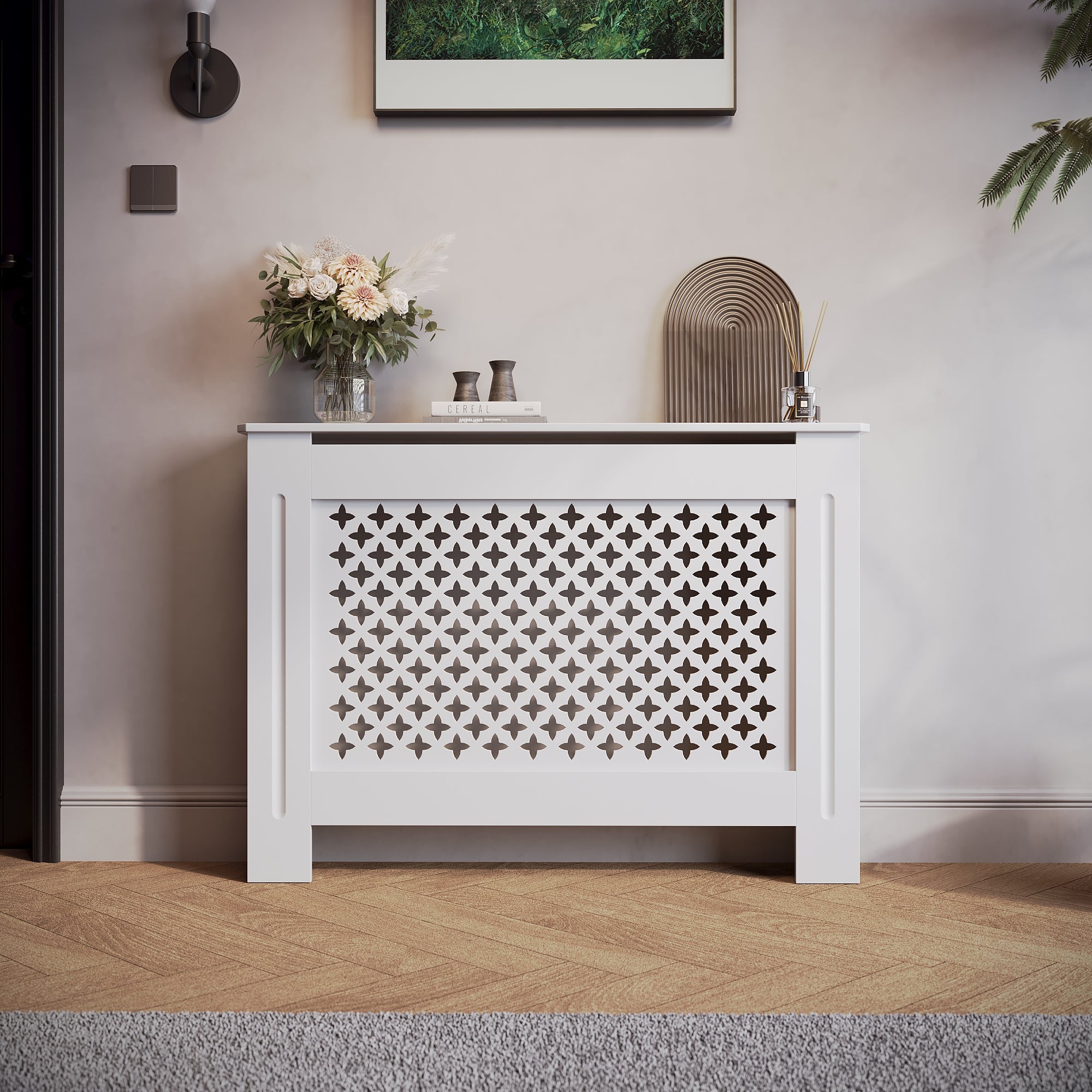 SIRHONA Habillage de radiateur en bois Grille croisée 112x19x81.5cm Blanc