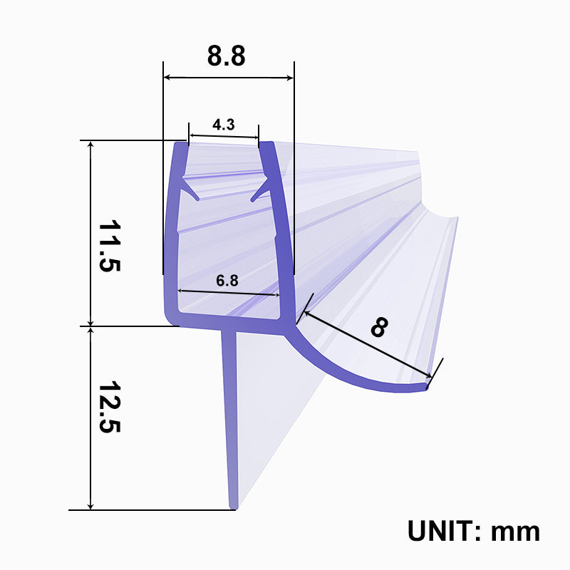 • Longueur: 70/80/90/120 cm, utilisé pour remplacer les joints avec une épaisseur de verre de 5/6 mm. Joint en caoutchouc de haute qualité, matériau PVC, avec déflecteur d'eau, sans colle.