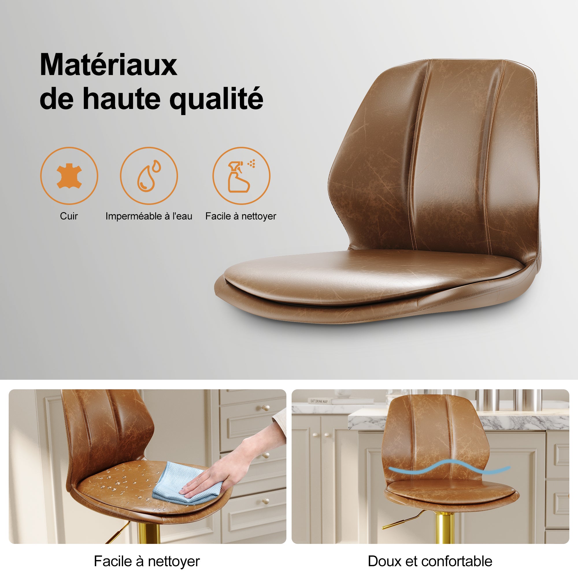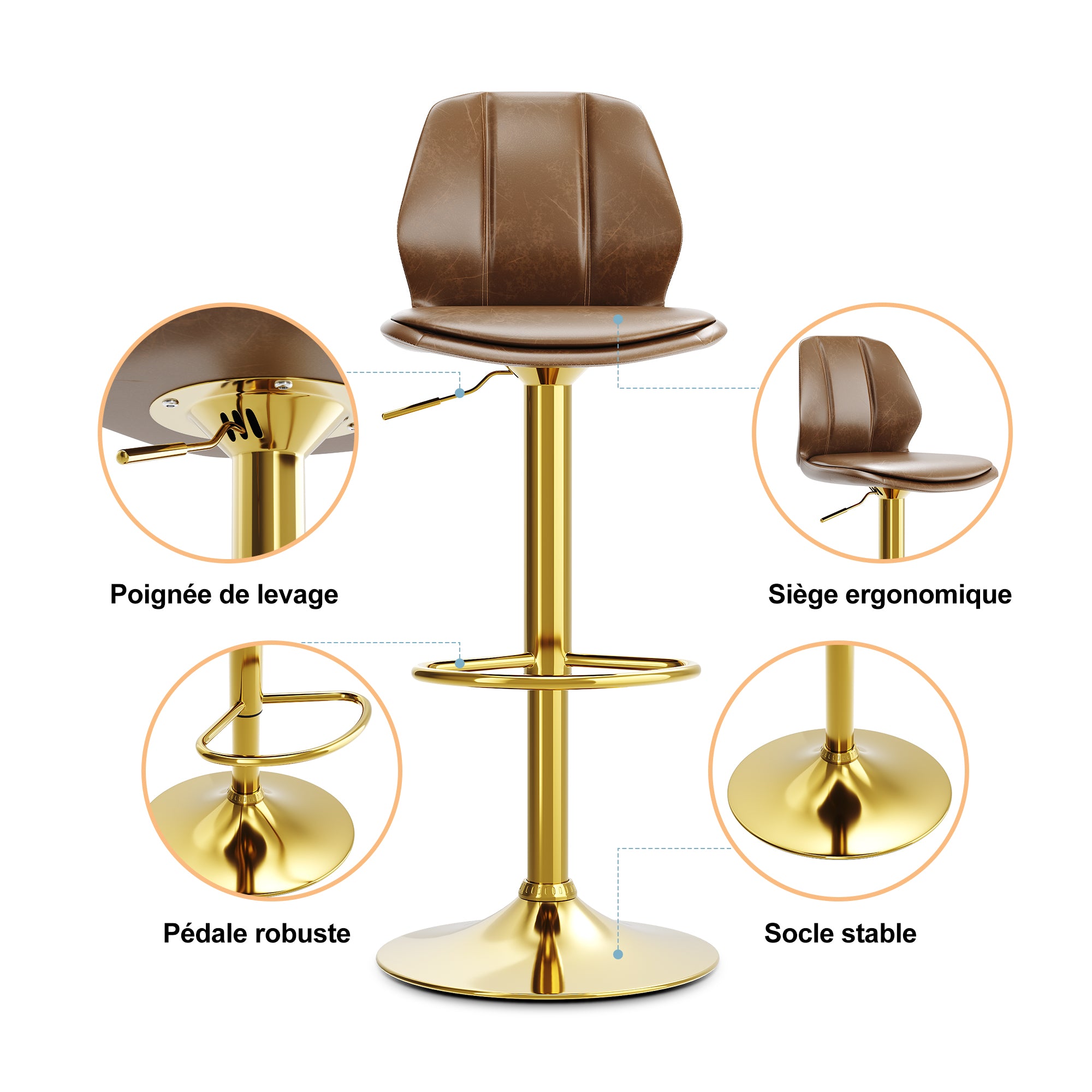 SIRHONA Lot de 2 Tabourets de Bar Chaise avec Dossier et Repose pieds Style modern Marron siège Dorée base