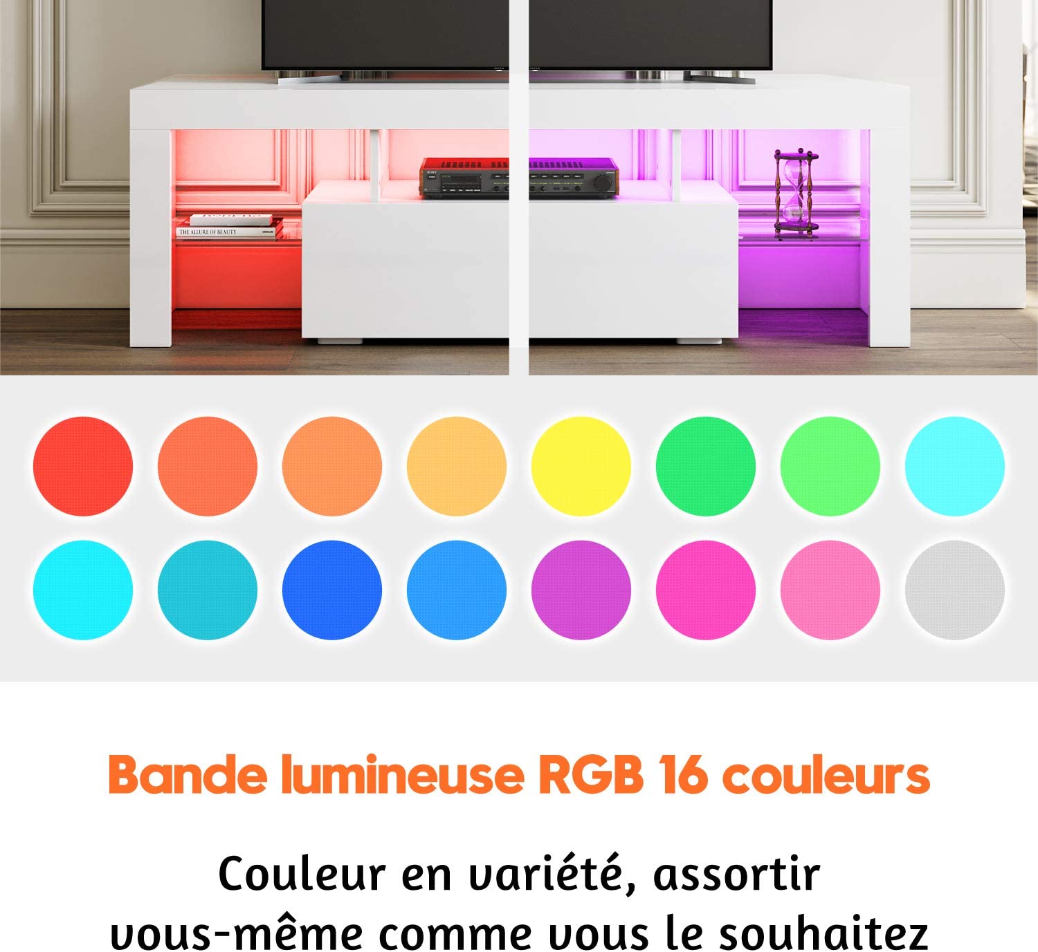 Meuble TV Bas, Lumière LED Réglable avec Télécommande, Grande Capacité, SIRHONA - Noir 140x35x50.5cm