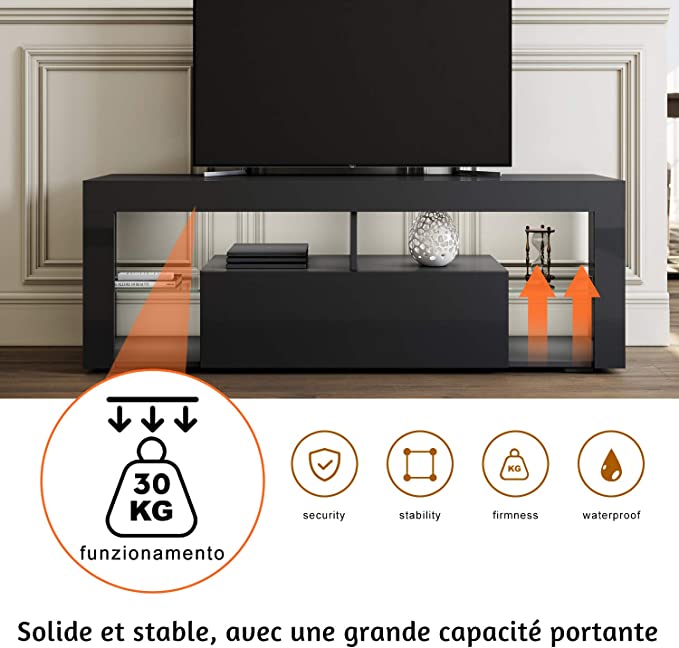 • Notre meuble TV est stable et offre à votre téléviseur ou autres appareils un meuble bas fixe.