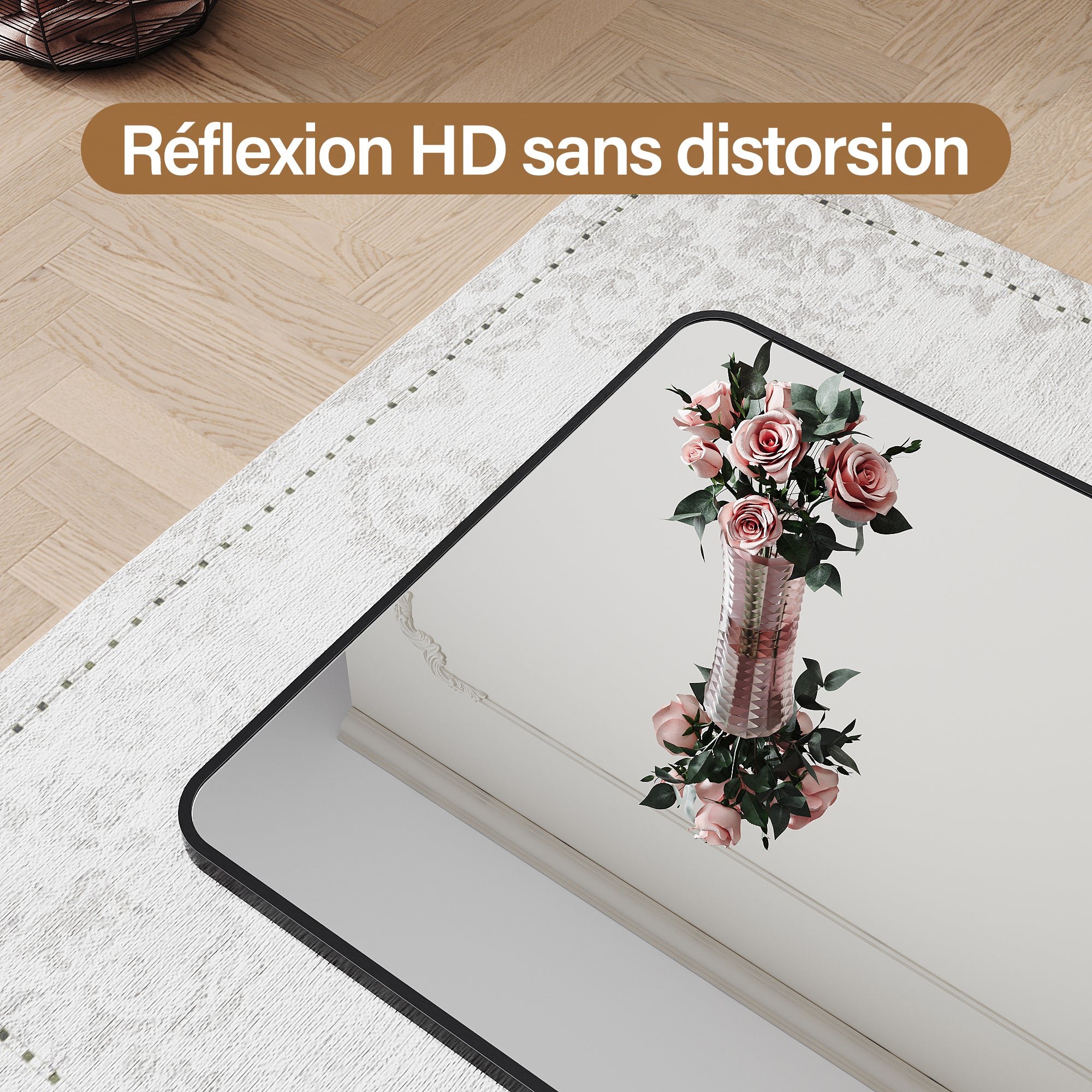• Surface de miroir sans cuivre ni mercure-Le miroir dispose d'une surface en verre de 3mm sans cuivre ni mercure, offrant un reflet clair sans distorsion de couleur. Il est écologique et non toxique, exempt de substances nuisibles, garantissant une utilisation sûre et fiable.