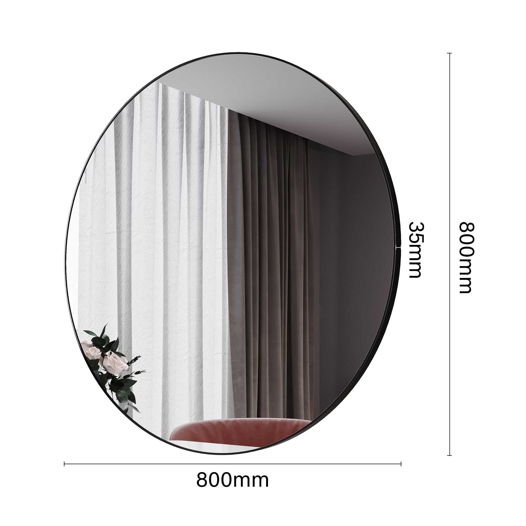 • Dimensions Parfaites-Les dimensions de ce miroir rond sont 800 x 800 x 35mm, ce qui le rend adapté à une variété d'espaces. Que ce soit pour une salle de bain, une chambre ou un salon, il s'intègre parfaitement dans n'importe quel environnement, ajoutant une touche moderne à votre espace.
