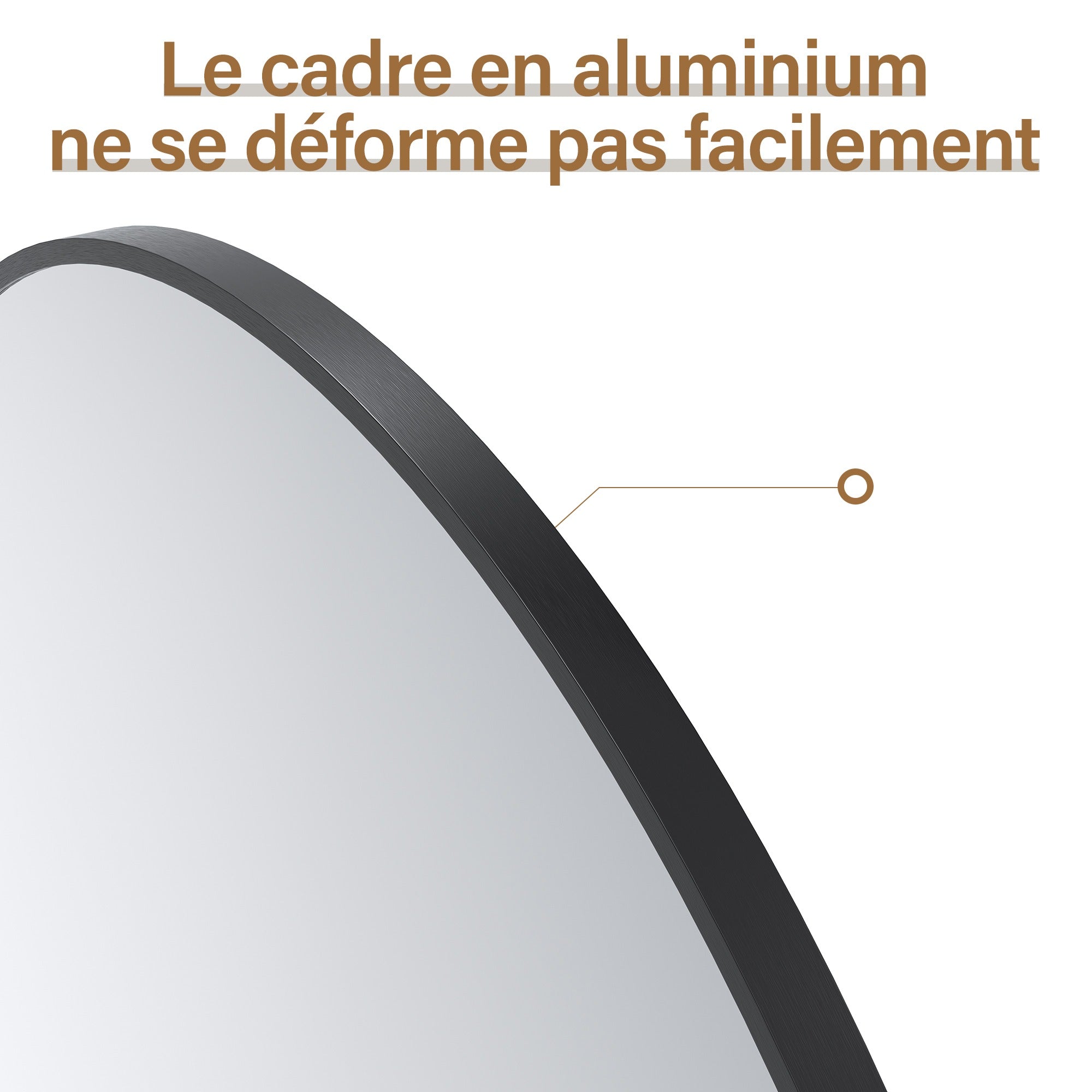 • Cadre en Aluminium de Haute Qualité-Le cadre du miroir est fabriqué en aluminium robuste, garantissant durabilité et stabilité. La surface est traitée avec un revêtement en poudre noir, ce qui améliore non seulement la résistance à la corrosion mais donne également au cadre une apparence élégante et minimaliste.