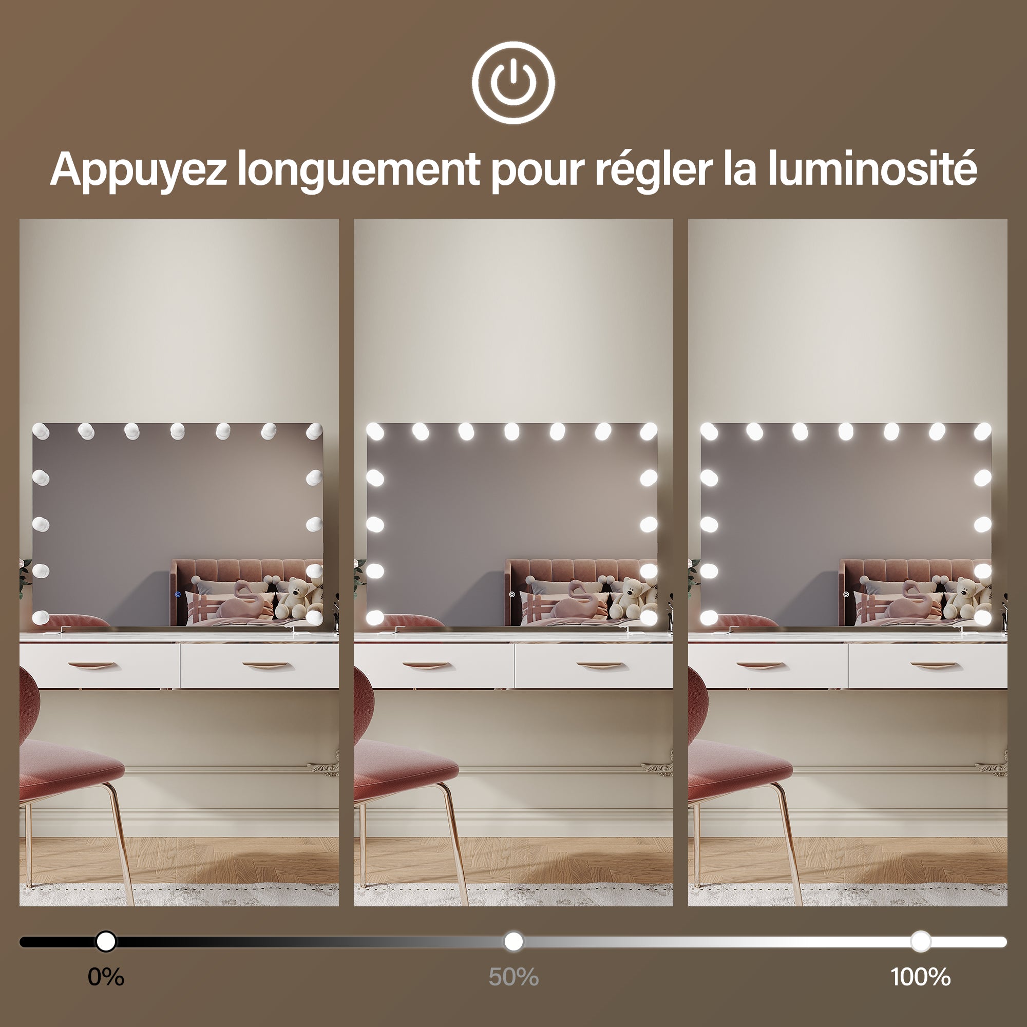 Lumière LED 3 couleurs + Fonction de gradation sans palier-Ce miroir de maquillage dispose d'un éclairage LED de haute qualité... En savoir plus