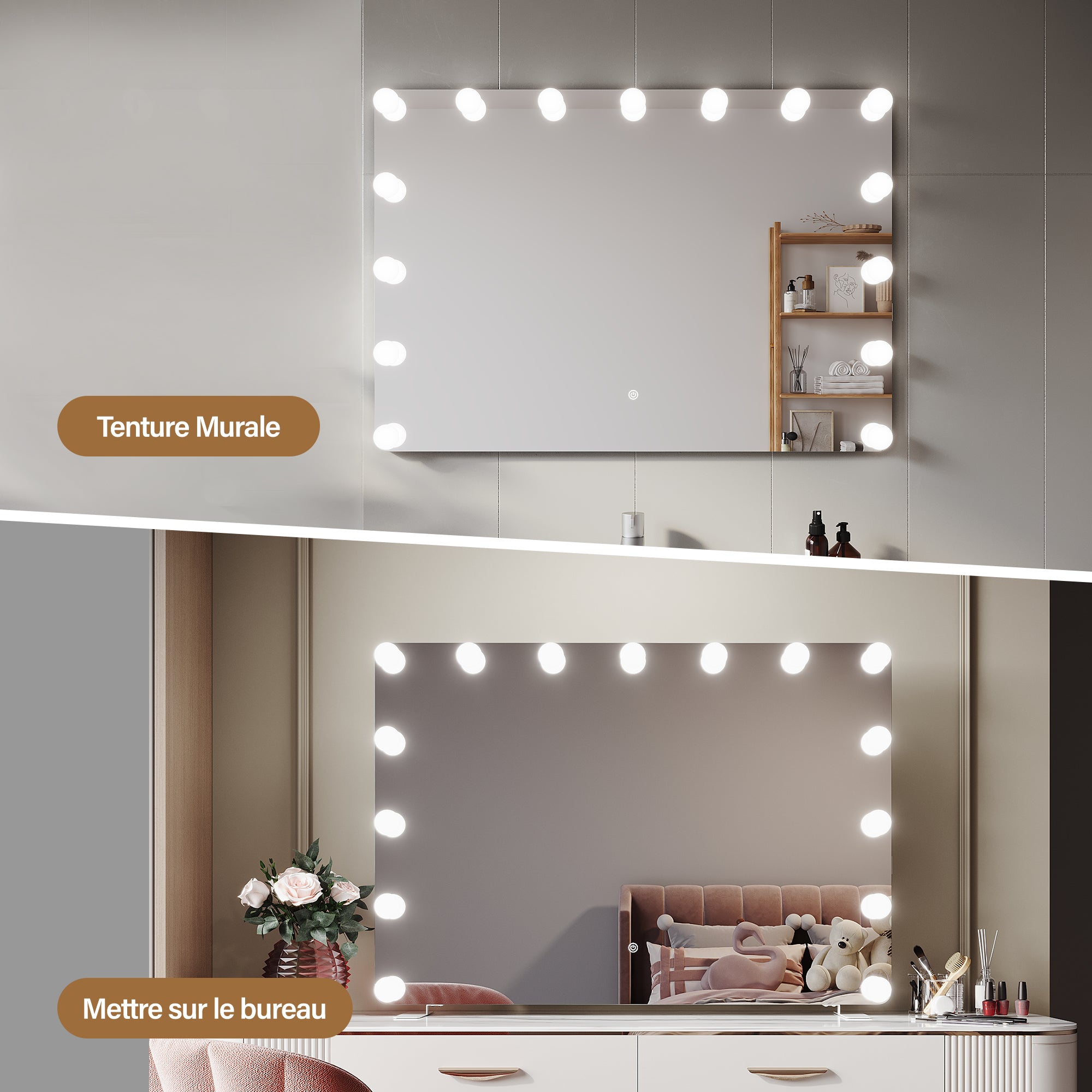 SIRHONA Miroir de maquillage LED, mural ou de table, 1000 x 700 x 35mm