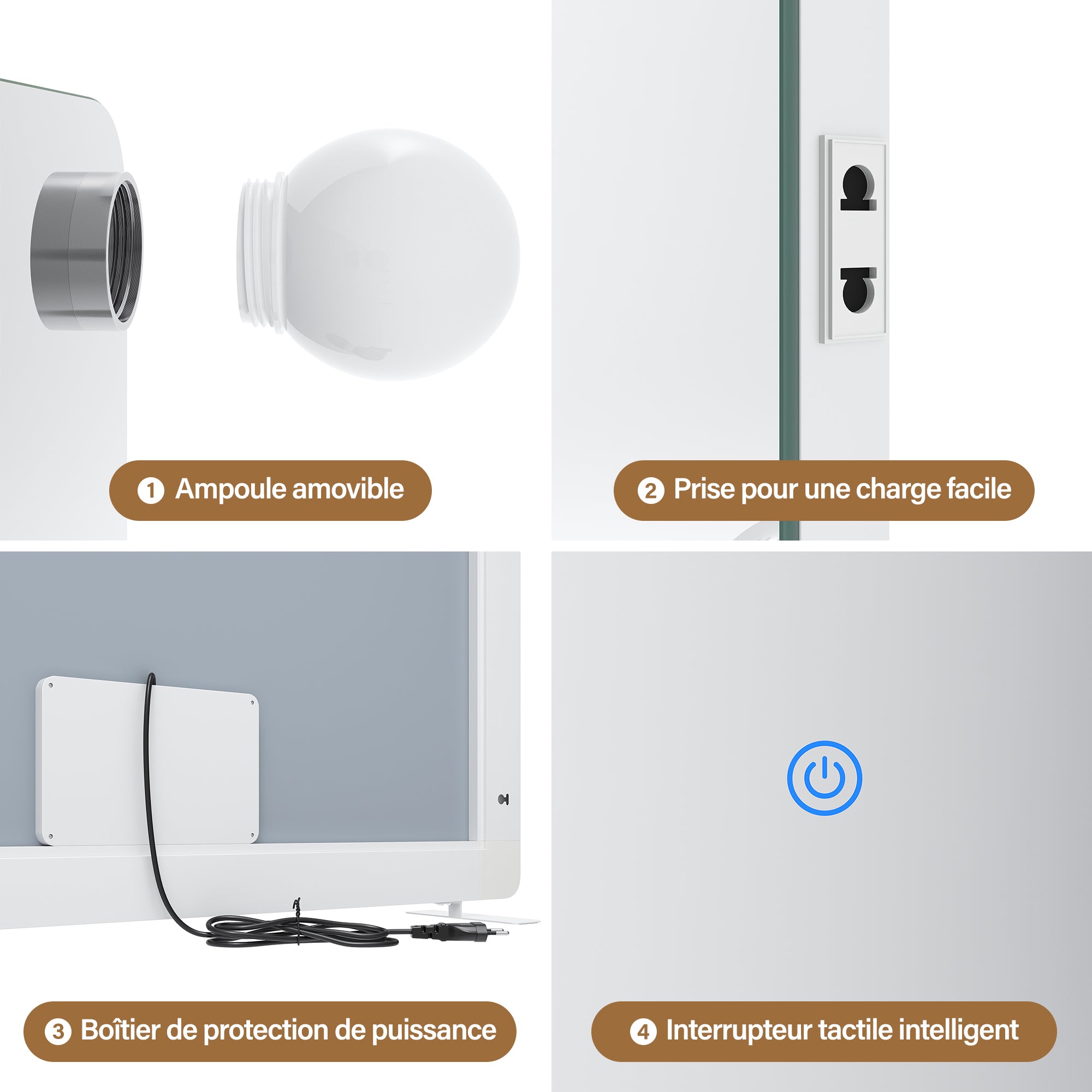 • Ampoules LED amovibles-Ce miroir de maquillage est équipé de 16 ampoules amovibles, offrant un éclairage lumineux et uniforme pour vous aider à appliquer votre maquillage parfaitement. Les ampoules amovibles sont faciles à nettoyer et à personnaliser, garantissant les meilleurs résultats à chaque utilisation.
