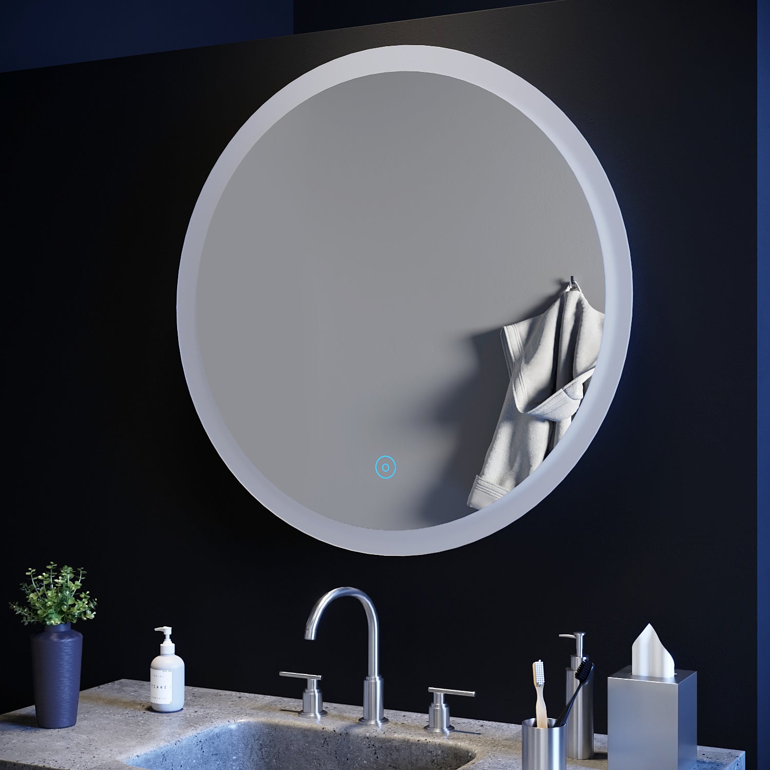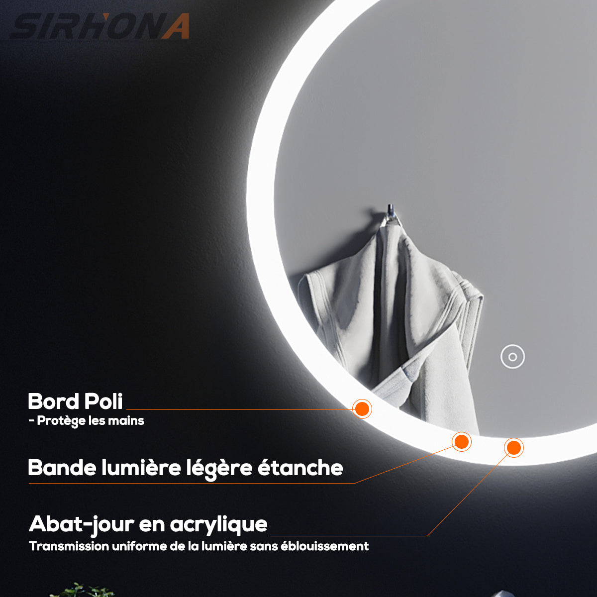 SIRHONA 80cm Miroir de Salle de Bain à LED Rond Anti-buée avec éclairage intégré Blanc Froid Miroir Rond Mural