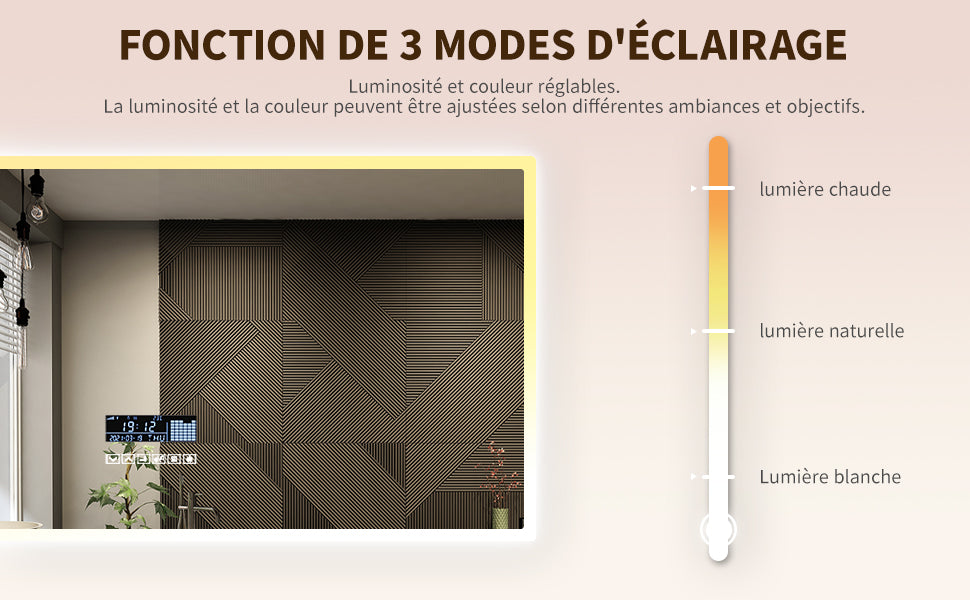 • Bande LED réglable en trois couleurs, changer une couleur par un effleurement: lumière blanche, lumière naturel , lumière jaune.