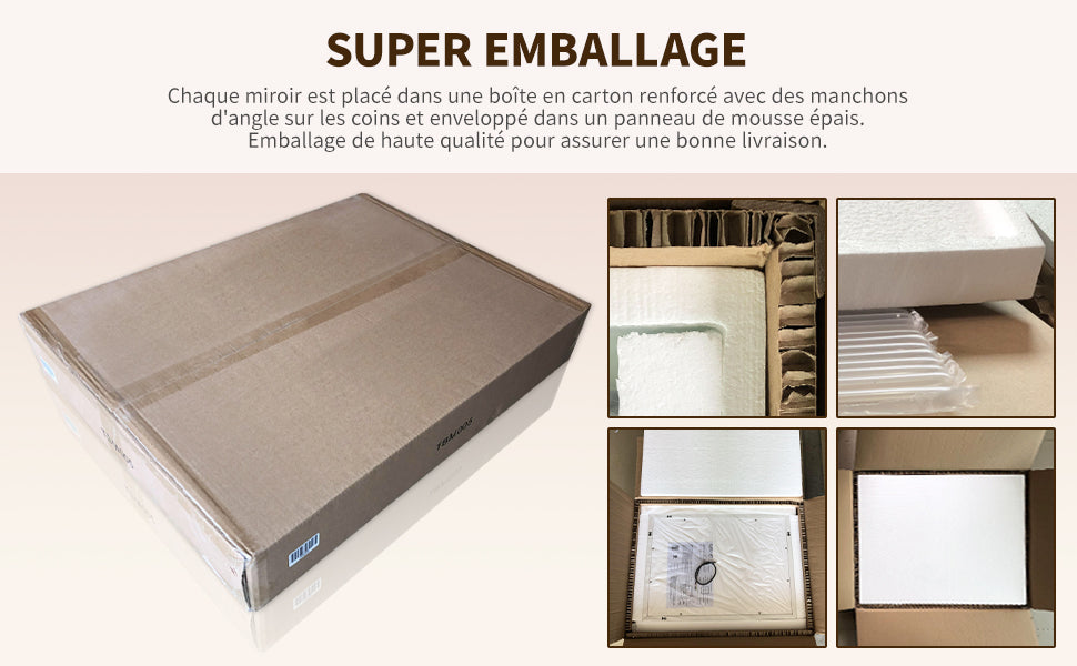 • Se compose d'un miroir en cuivre et sans plomb de 5 mm, la réflexion du miroir est claire et naturelle. Bord du miroir avec technique polie,sans se rayer les mains.
