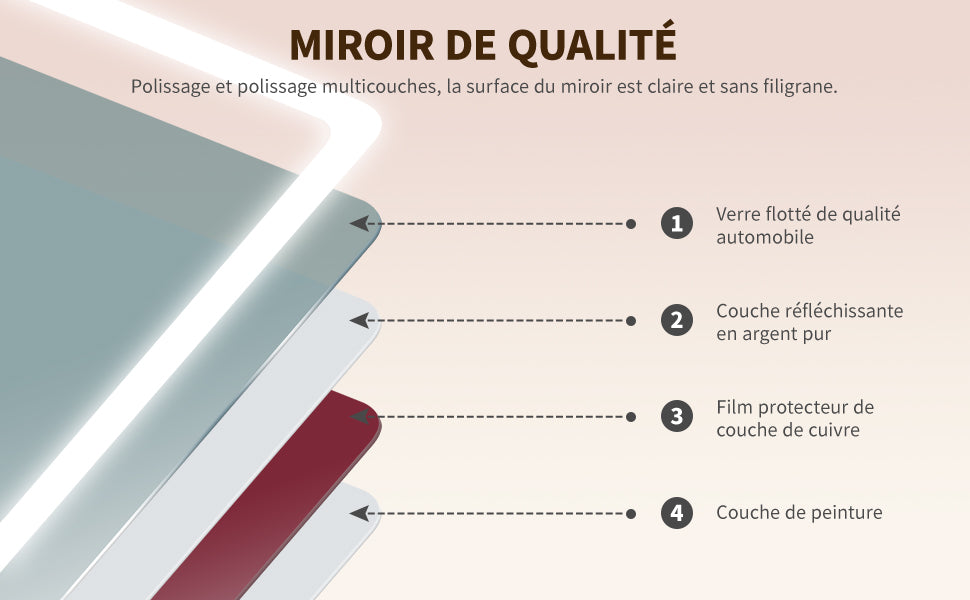 Miroirs de salle de bains : garantie de remplacement du produit de 2 ans.