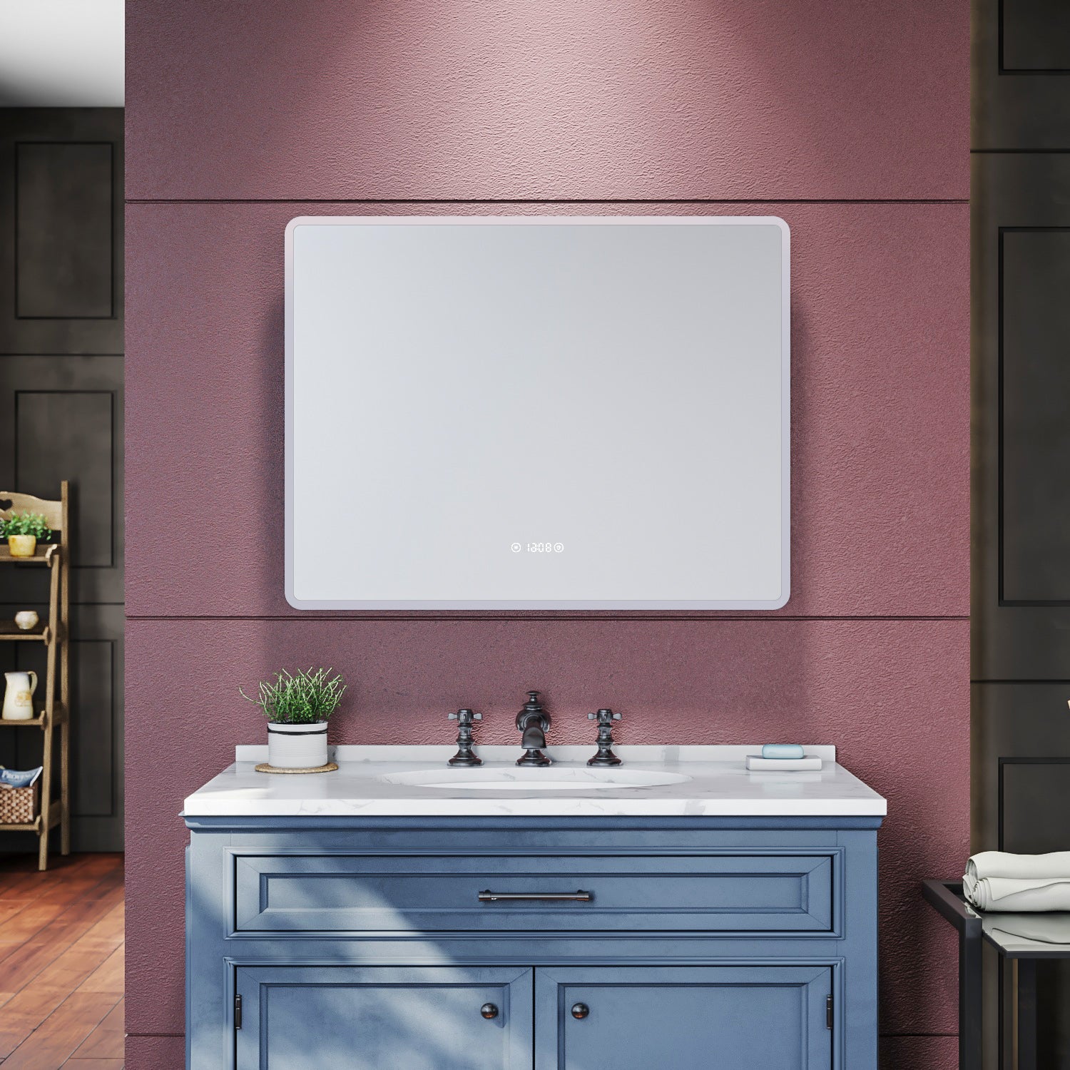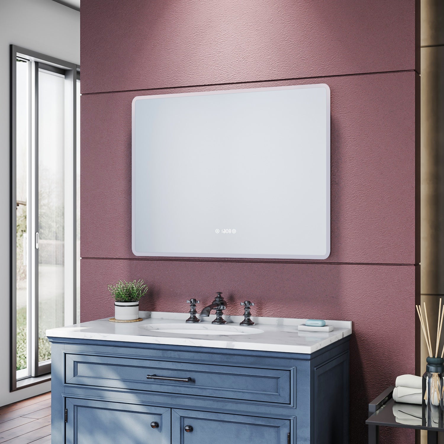 SIRHONA Miroir de salle de bains 900x700x35mm - Miroir mural cosmétique LED - Trois températures de couleur - Anti-buée avec réglage de l'heure