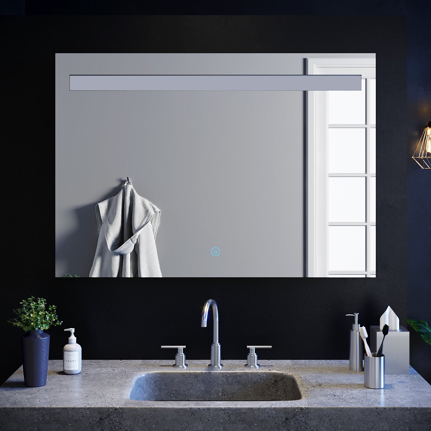 • LED à économie d'énergie, à commande miroir avec connexion au secteur, pas de batterie.