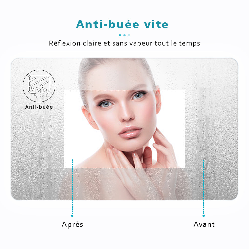 • Fonction Anti-buée : gardant toujours le miroir sans vapeur pendant la douche, idéal pour les cosmétiques et le rasage.