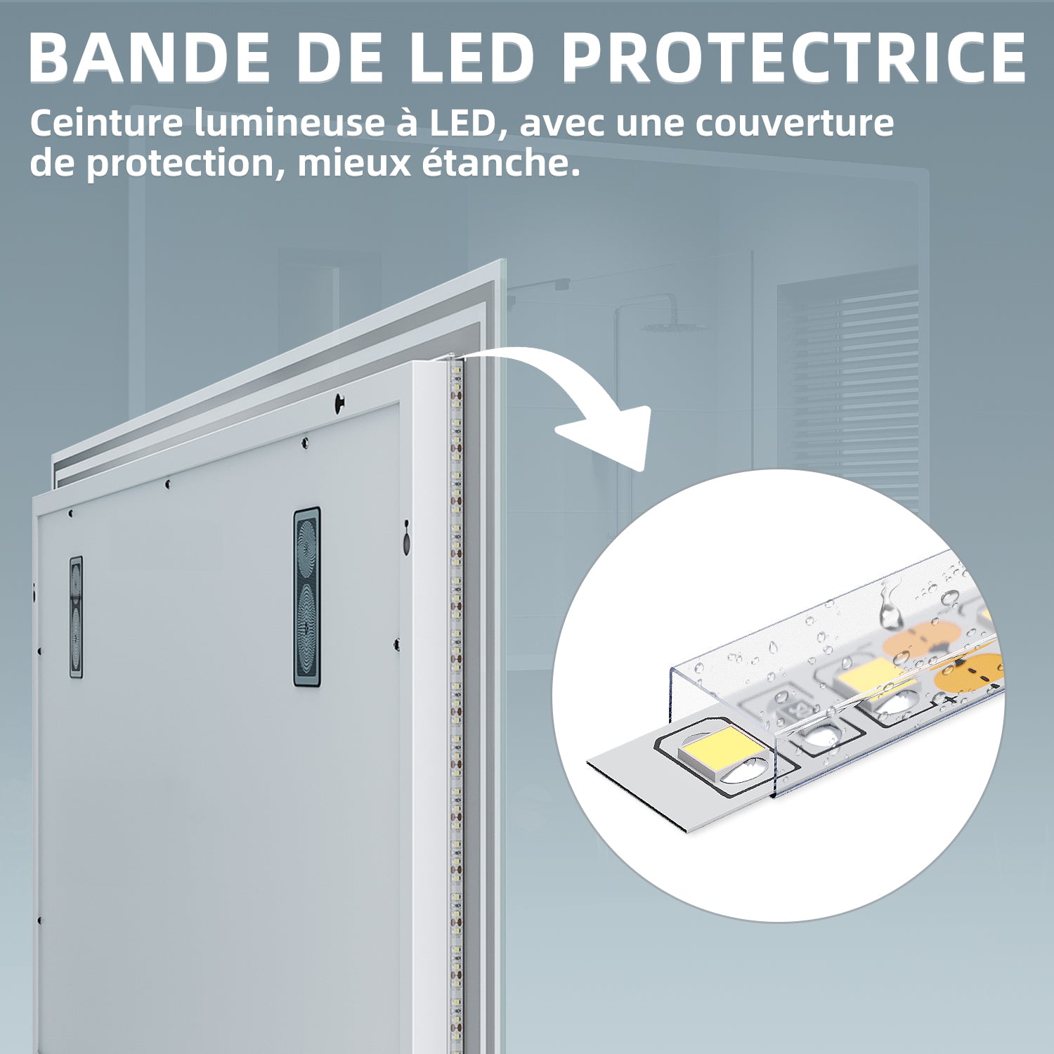 SIRHONA Miroir LED Salle de Bain Bluetooth 80x60cm Miroir Lumineux Salle de Bain avec Eclairage Intégré Anti-buée