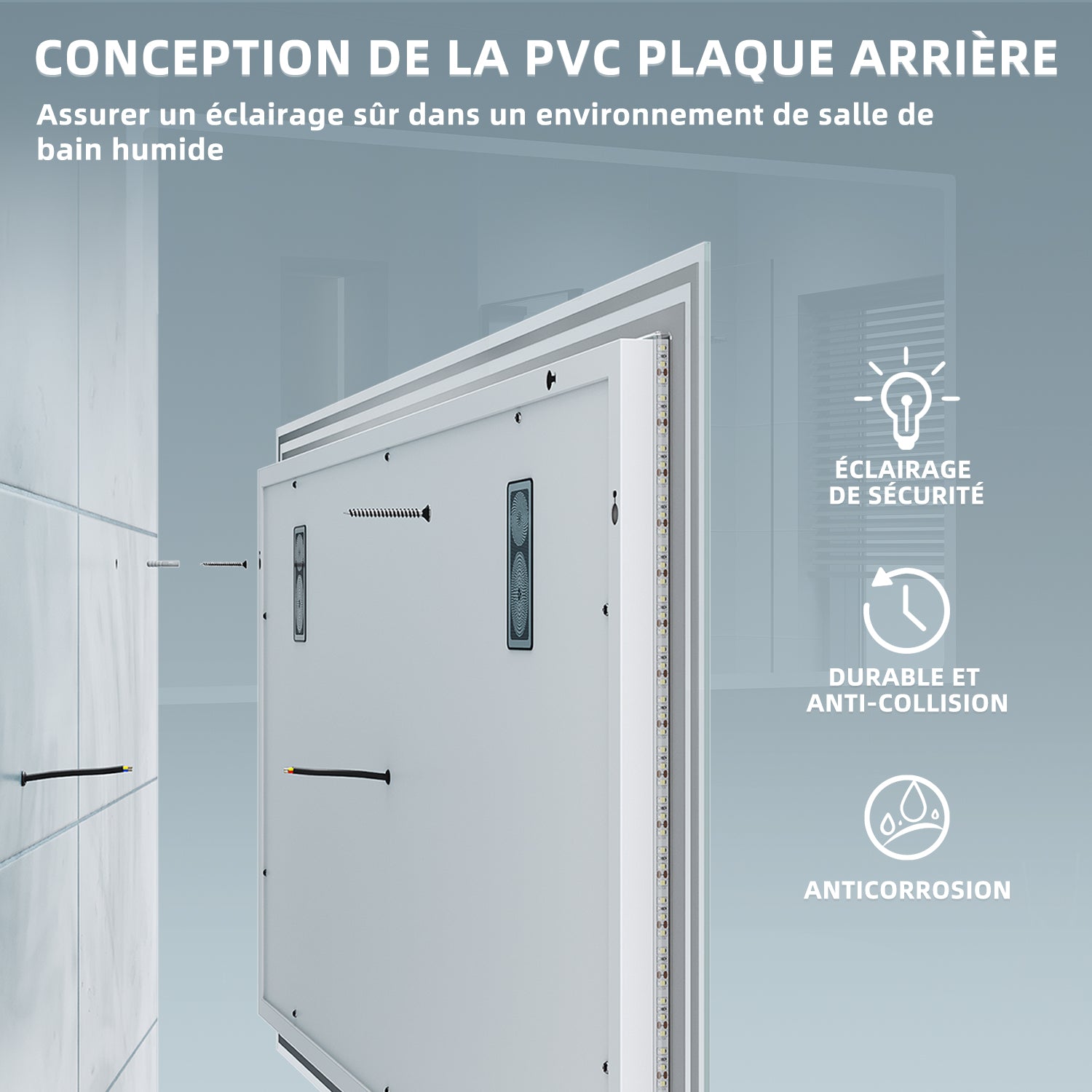 • Interrupteur Tactile:Miroir salle de bain avce deux interrupteur tactile. Un pour la fonction de 5.0 bluetooth, d'autre pour le bouton tactile et la fonction anti-buée.
