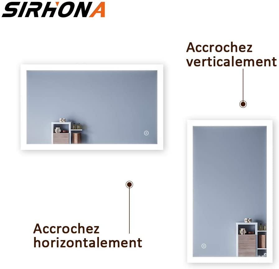 SIRHONA Miroir LED Salle de Bains avec éclairage LED Miroir Muraux AVCE Anti-buée Fonction Cosmétiques Mural Lumière Illumination