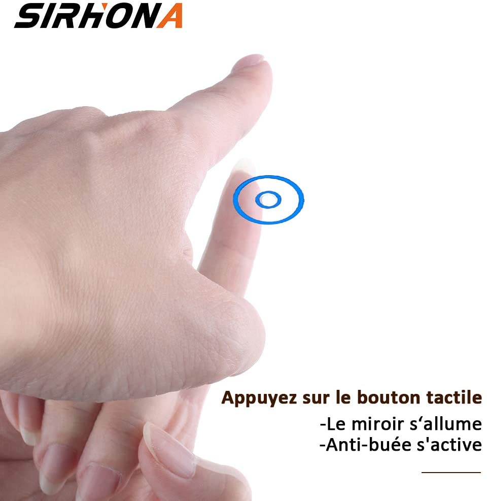 • Fonction Anti-buée: Appuyez sur le bouton tactile, la fonction anti-buée active en même temps. La lumière est tout à fait suffisante pour pouvoir se maquiller et se raser.